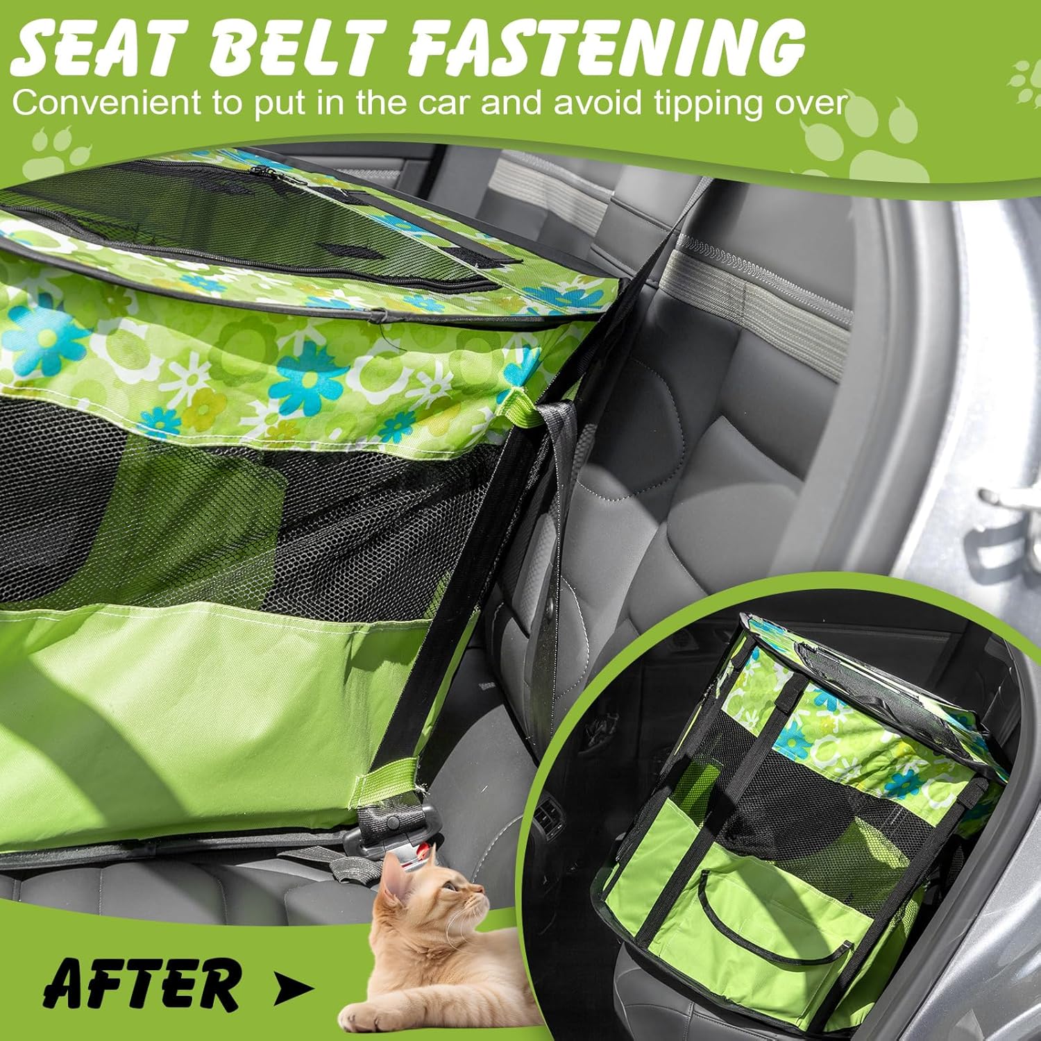 【Portable & Multi-Functional】This foldable cat enclosure is lightweight and comes with a carry bag and Seat belt fixing rope, making it perfect for travel, camping, or indoor use. It can also serve as a pet maternity room, recovery space, or play area, with side pockets for storing pet essentials.