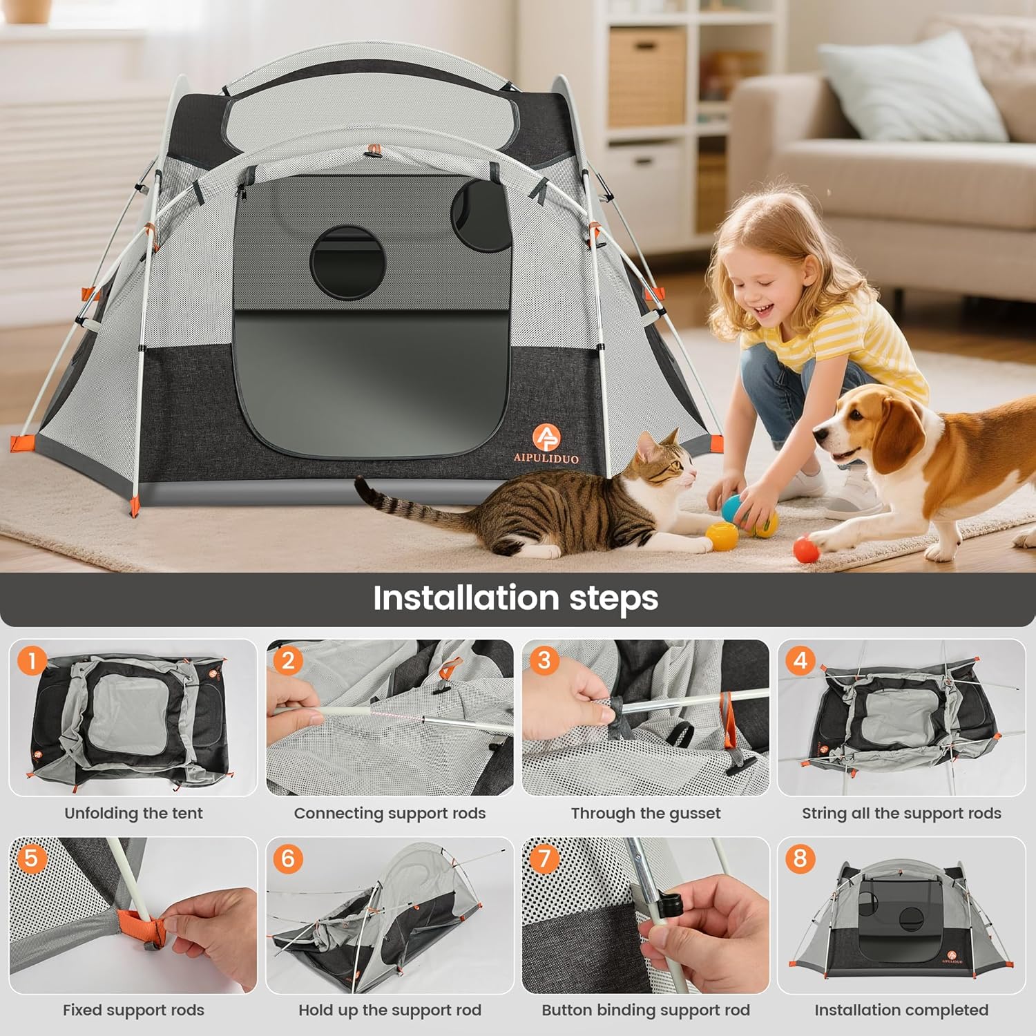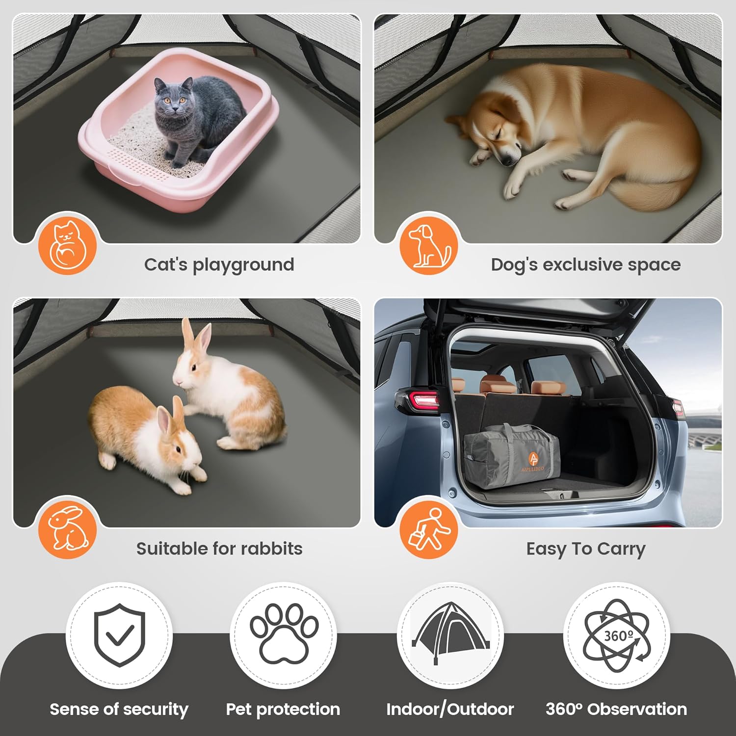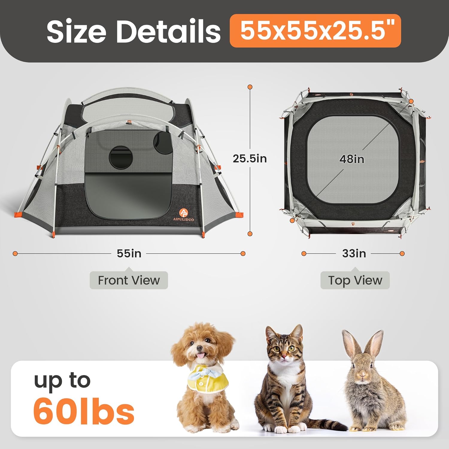 Effortless Set-Up and Portability: The AIPULIDUO portable puppy tent is designed for quick assembly, allowing you to set it up or fold it away in minutes. Its lightweight design makes it easy to carry and store in the included convenient carry bag, ensuring you can take it anywhere your adventures lead.