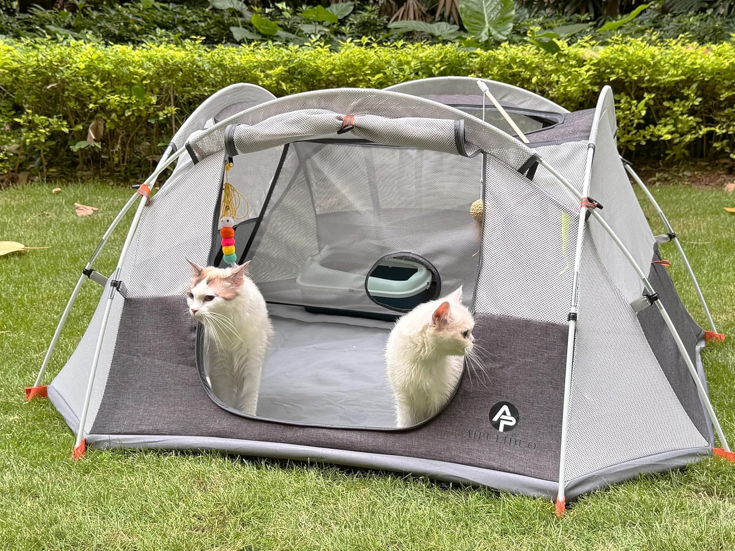 Quality Materials: This pet tents for cats constructed with durable 600D oxford fabric and anti-tear dense mesh, complemented by a robust fiberglass pole and secure steel stakes, ensuring a strong and reliable shelter for your pet during outdoor.