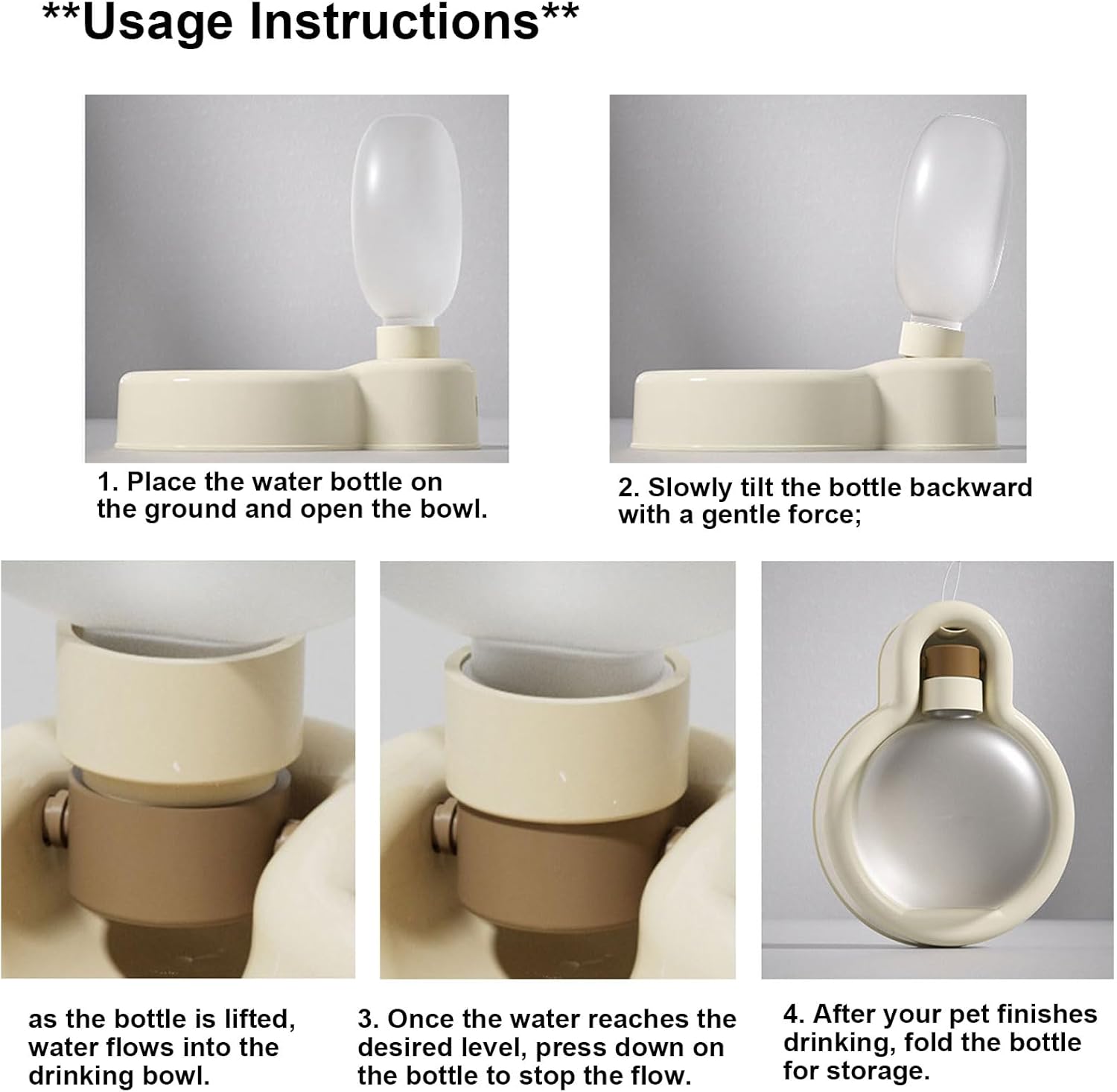 Easy to Use – Simply unfold the bowl and tilt the water bottle backward—the bottle will be lifted, and water will flow into the bowl. The large-diameter bowl allows for comfortable and easy drinking, ensuring your pet stays hydrated on the go