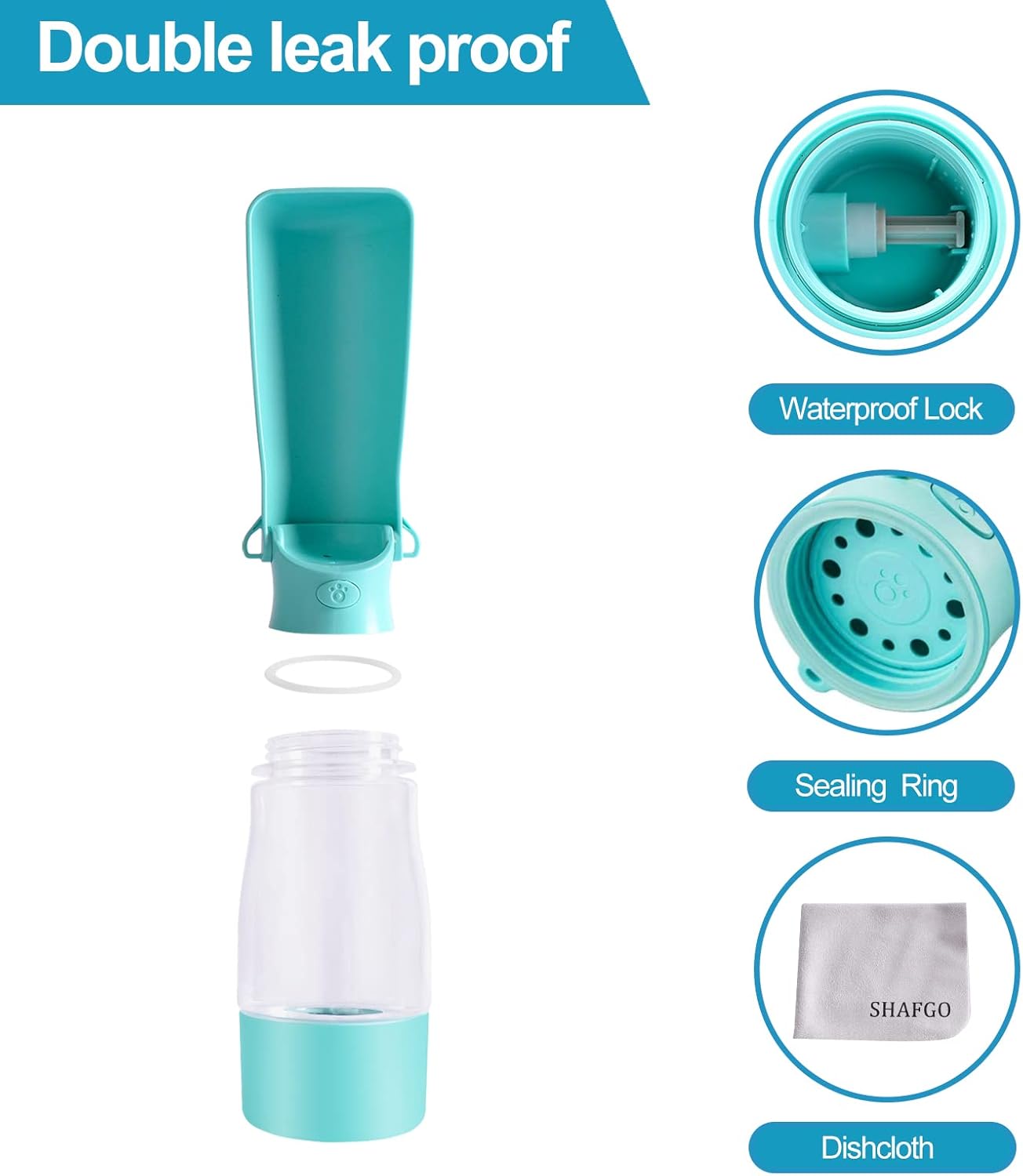 Double leak proof:Silicone sealing ring plus built-in waterproof button design,make sure the dog water bottle doesn’t leak at all. Scrub it with the included cloth wherever you feel dirty.