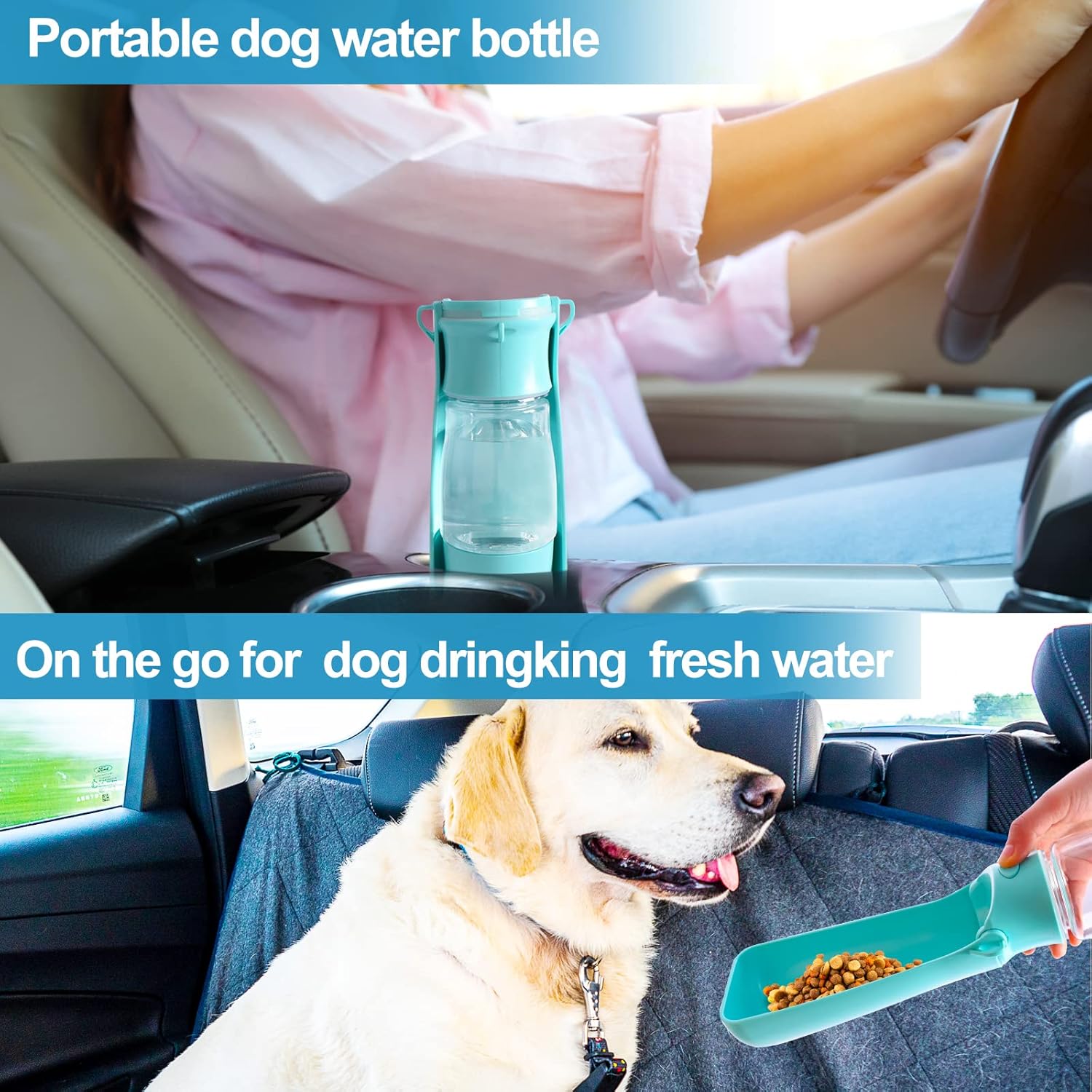 Easy to carry :the portable dog water bottle comes with an adjustable wide shoulder strap and a carabiner.Carry it over your shoulder or hang it over your bag , whatever you like.