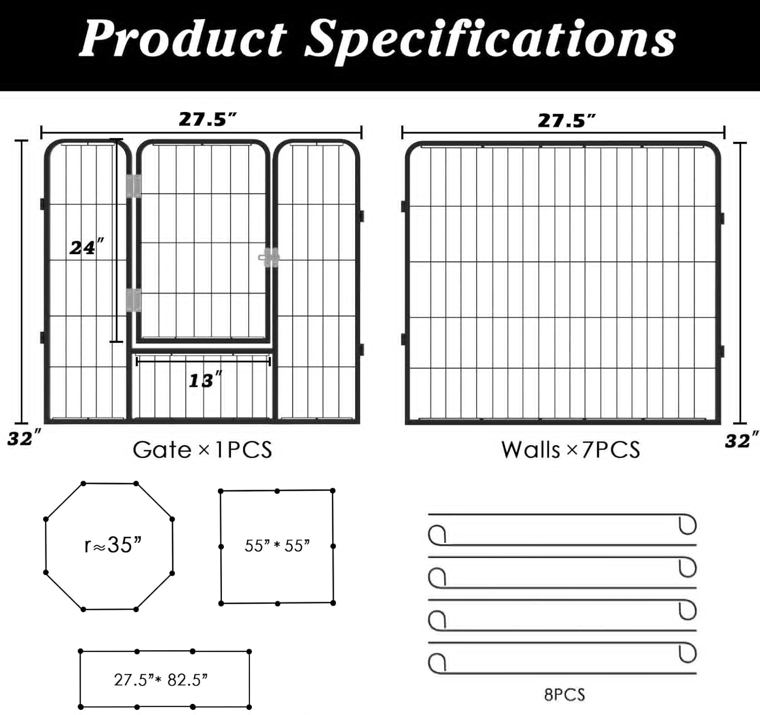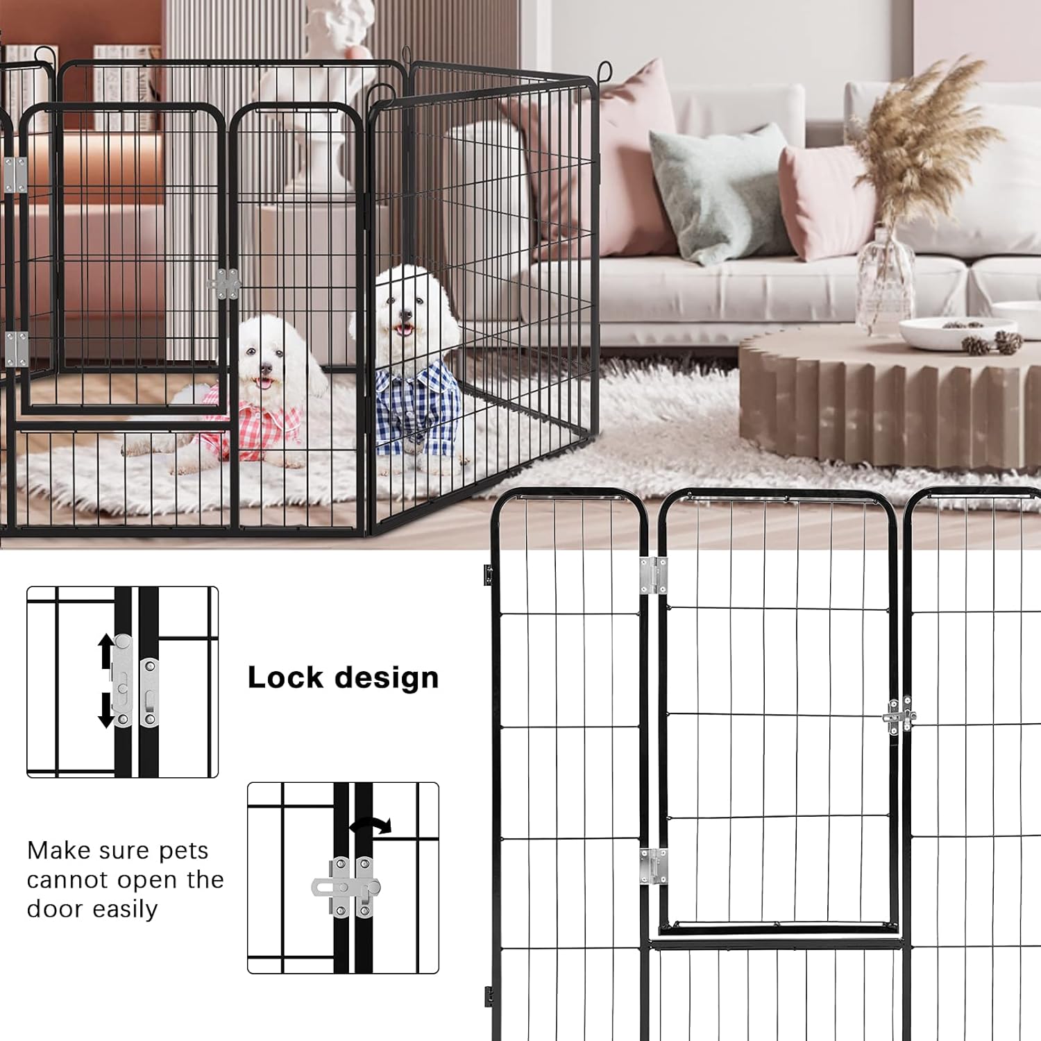 PUKAMI Dog Fence for The Yard, 8 Panels 32” Height x27.5” Length,Puppy Playpen for Small Medium Dog Portable Dog Playpen Exercise Pen for Indoor Outdoor,Pet Playpen Fence for Yard,RV,Camping