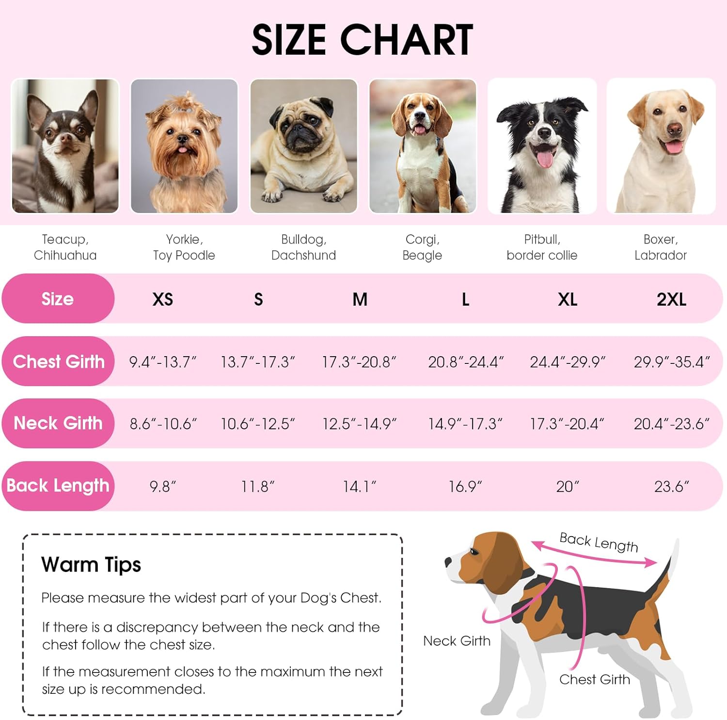 SIZE NOTE – Dog vest is available in 8 sizes. Please measure your dog before purchasing to ensure the perfect fit.Your baby usually wears size S doesn’t mean all size S will fit him/herIf any of the measurements are between two sizes, please choose the large size.