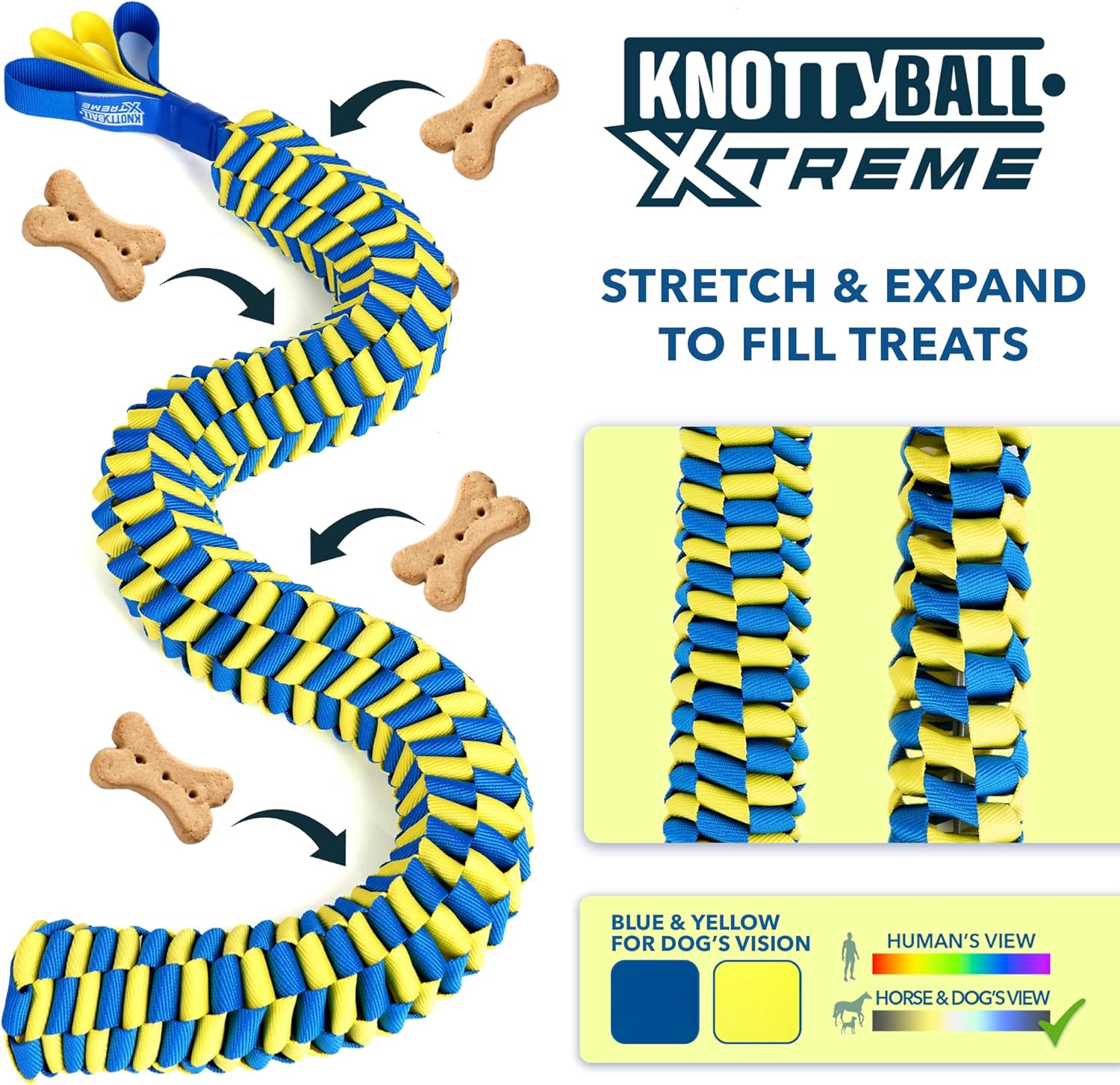 KnottyBall Xtreme patented knotting system and treat-dispensing mechanism represent the latest advancements in interactive dog toys.