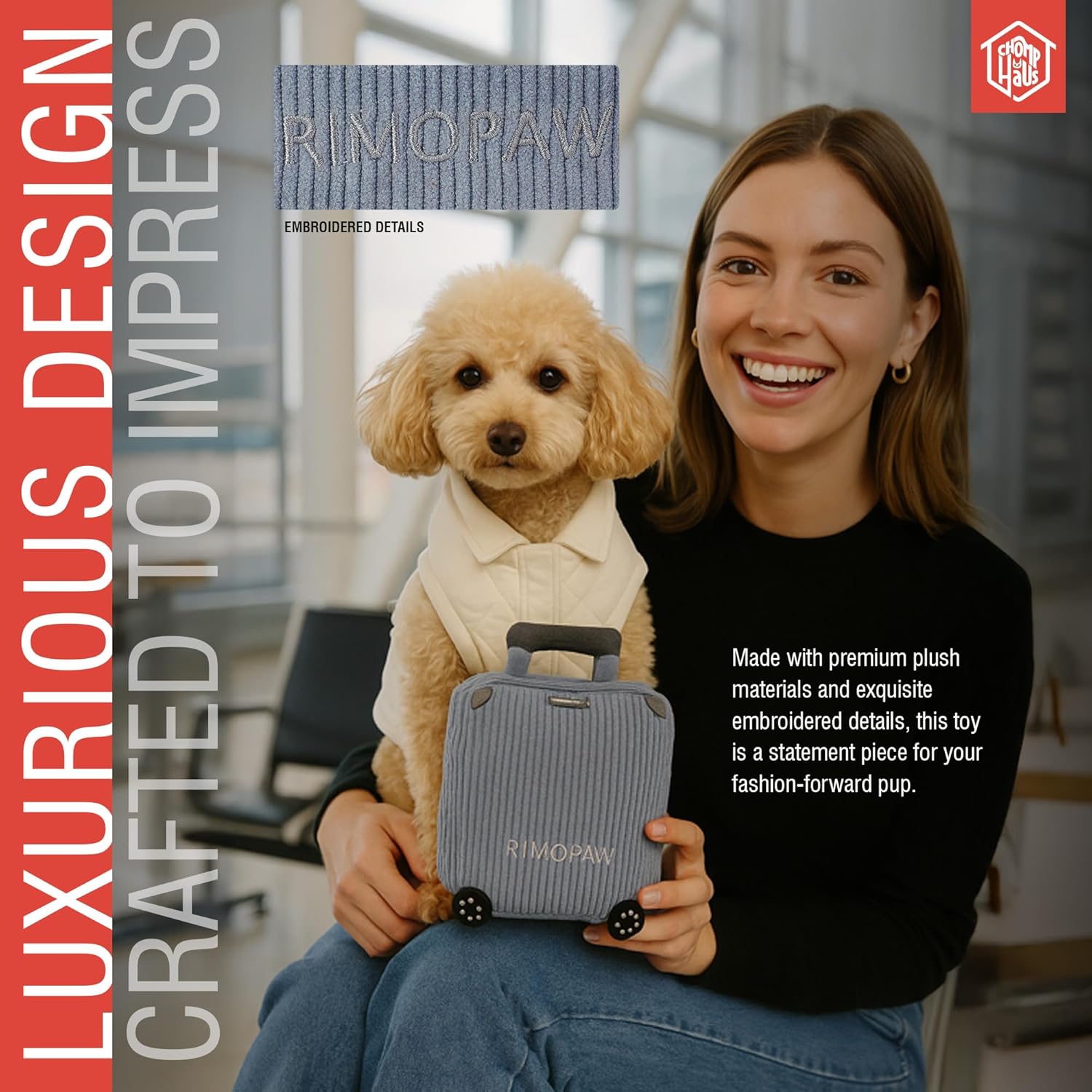 CHOMP HAUS: LUXE TOYS THAT LAST – Combining premium materials with standout designs, our toys deliver safe, durable, and stylish fun. Treat your dog to a play experience that’s as sophisticated as it is entertaining!