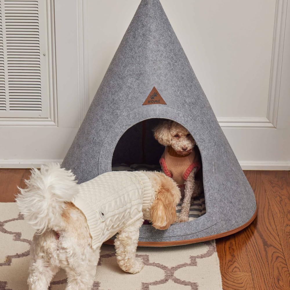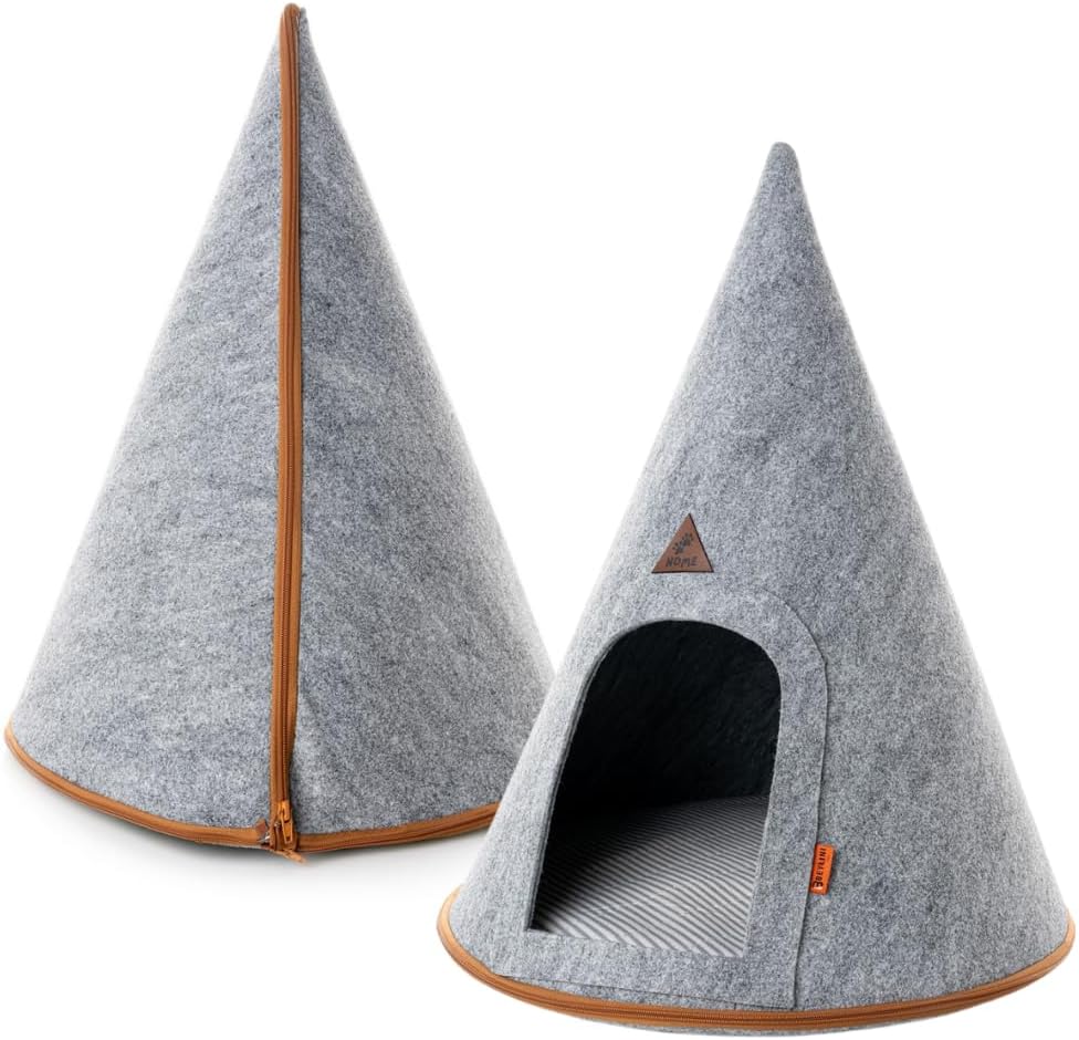 SAVUK Pet Tent Cat Dog House Felt Cave Bed with Cushion&Bag Decorative Foldable Igloo Hut Teepee Small and Medium Suitable for Travel Warm in Winter Cool in Summer 16″x16″18″ Grey (Gray, Small)