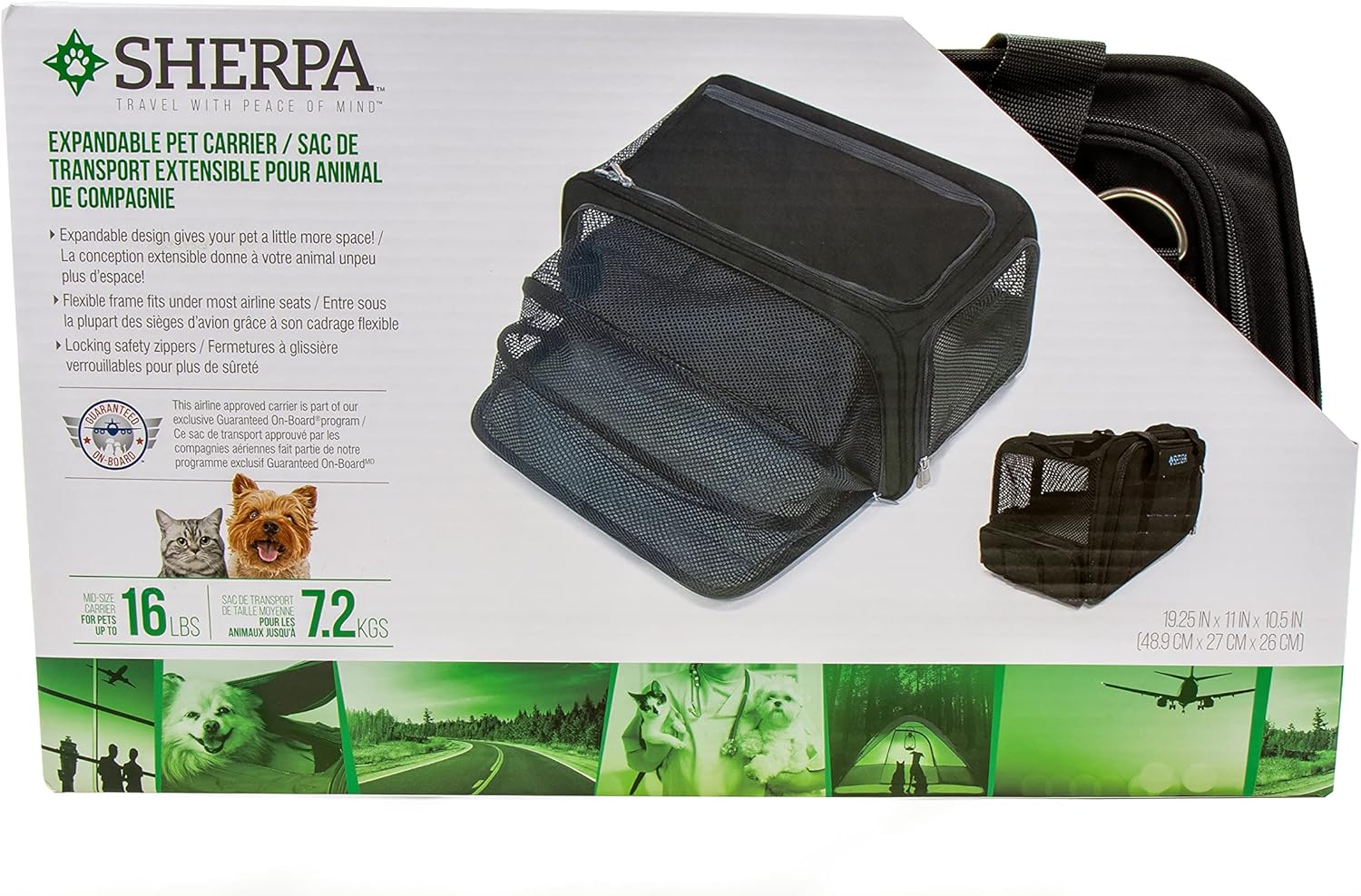 Sherpa Expandable Travel Pet Carrier, Airline Approved & Guaranteed On Board – Black, Medium