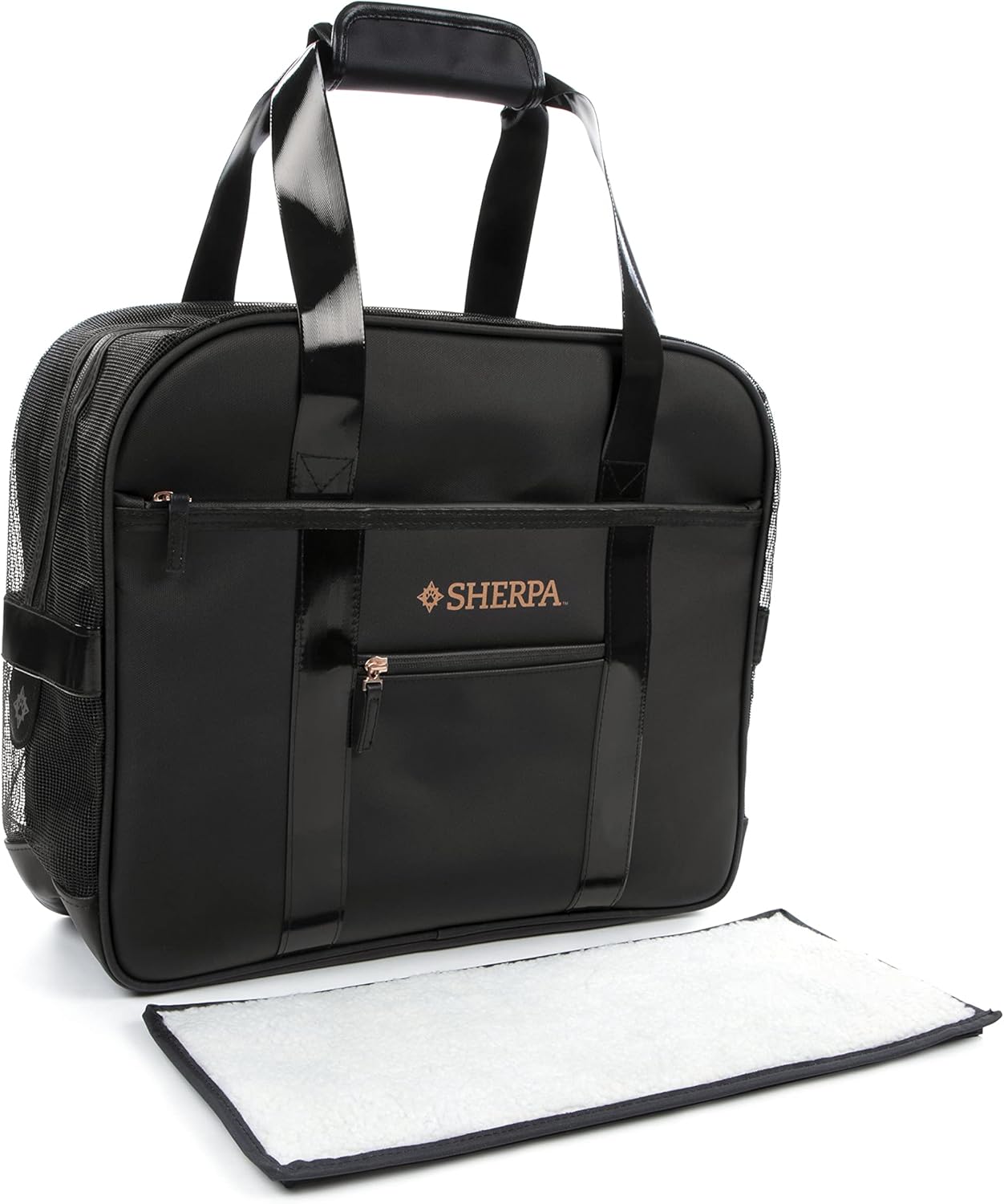 Travel in comfort and style with the Sherpa Tote Around Town Pet Carrier. Perfect for traveling with your dog or cat by car, airplane, or for everyday use including outdoor activities and visiting the vet. This stylish travel bag features a lightweight, flexible design that stores flat, but offers a spacious design with top and side mesh for ventilation, locking zippers for security and safety, and long handle straps. The Tote Around Town has coated straps, fabric and waterproof zippers that repel stains and water, making it safe and easy to clean. It can be easily cleaned by wiping it down with a cloth and or wipe. Each bag also includes a removable, machine-washable faux lambskin liner and a full-length front pocket for convenient storage of pet treats, toys, and accessories. Sherpa Travel gives pet parents the best of all worlds: innovative products, stylish designs, and exceptional value with a variety of travel carriers, leads, mats, straps, to meet a pet’s and pet parent’s needs for travel. Sherpa products are designed to meet child safety standards. Please read all packaging instructions, warnings and cautions upon receipt. Packaging contains small parts, discard after opening.