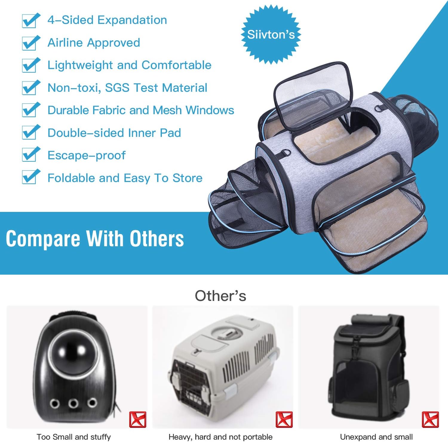 Siivton’s Expandable Pet Carrier provides extra space for your pet on the go!