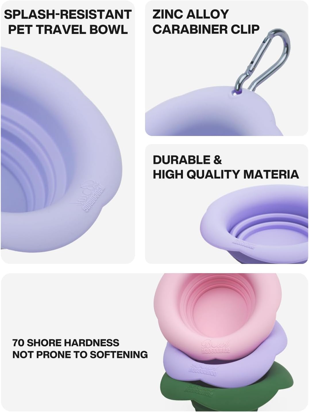 【Splash-Resistant Pet Travel Bowl】Designed with a petal-shaped rim and wider edges, this collapsible bowl minimizes spills during travel, keeping your pet hydrated on the go. Its charming floral design is both functional and space-saving.