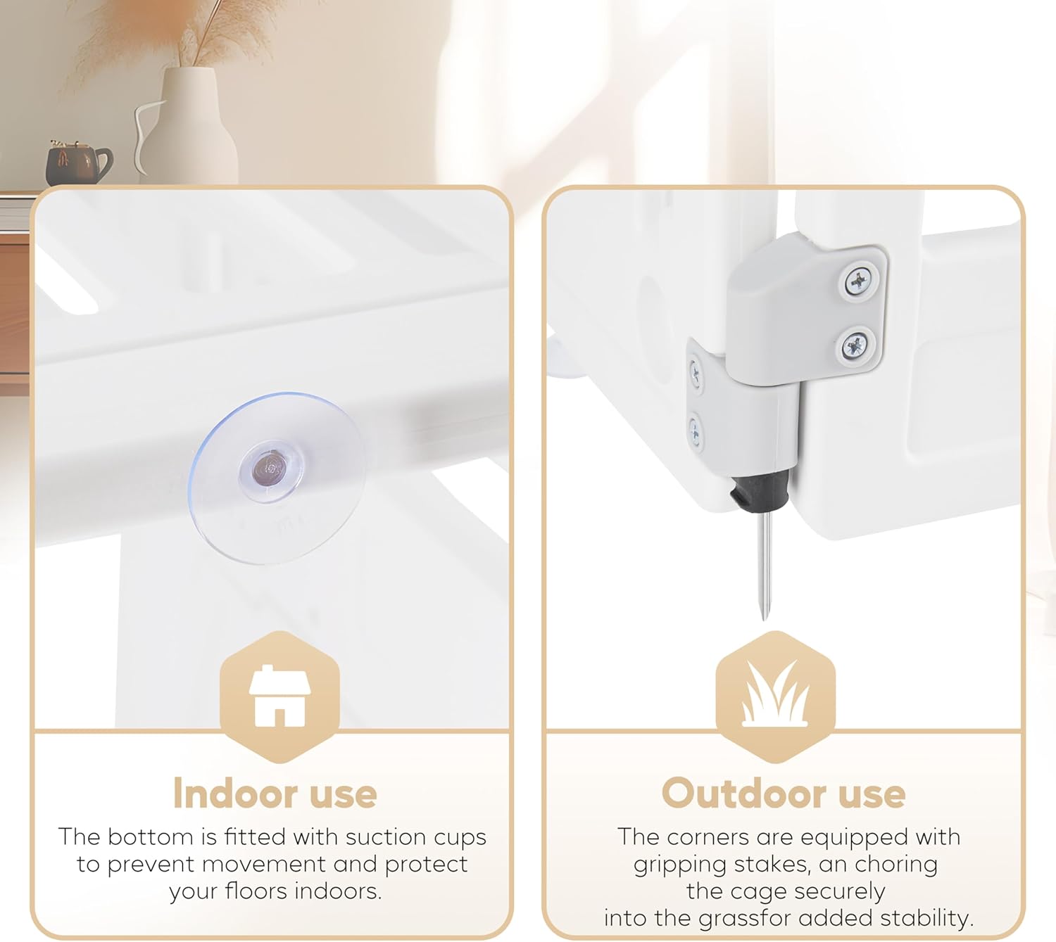 Durable Design: The playpen is made with durable and non-toxic plastic, the smooth surface is easy to clean, puppy playpen can be used indoor and outdoor, you can also order more panels to expand area for your puppy or pet, giving them more room to roam