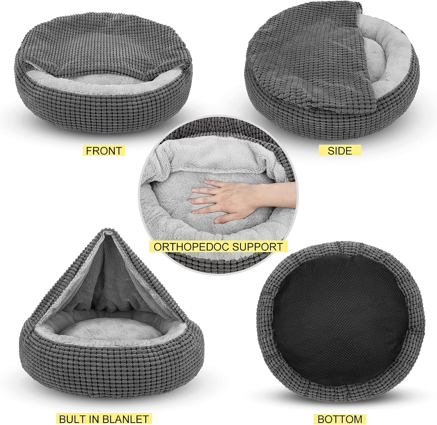 🐾ULTRA SOFT MATERIAL SAFETY : The interior sleep surface is lined with covered in ultra soft short plush fabric, Deep fill high resilience pp cotton. And the exterior features corn kernel shaped grey plush fabric, it’s look like cute and fashion. They are gentle smell to the nose, good protection to the paws. It will comfortable for your pet sleepping and rest. Suitable for all seasons for your pet snugger on our dog bed. Vacuum packaging to eliminate pollution,allergens