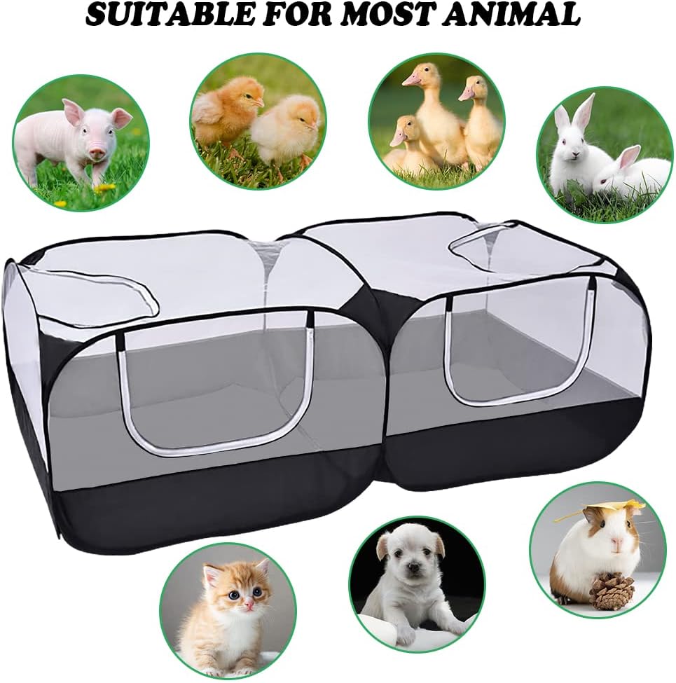 Small Animal Pet Playpen with Feeder Bowl and Storage Bag,Portable & Breathable Chicken Coop for Puppy Kitten Rabbits Indoor Outdoor(Black)