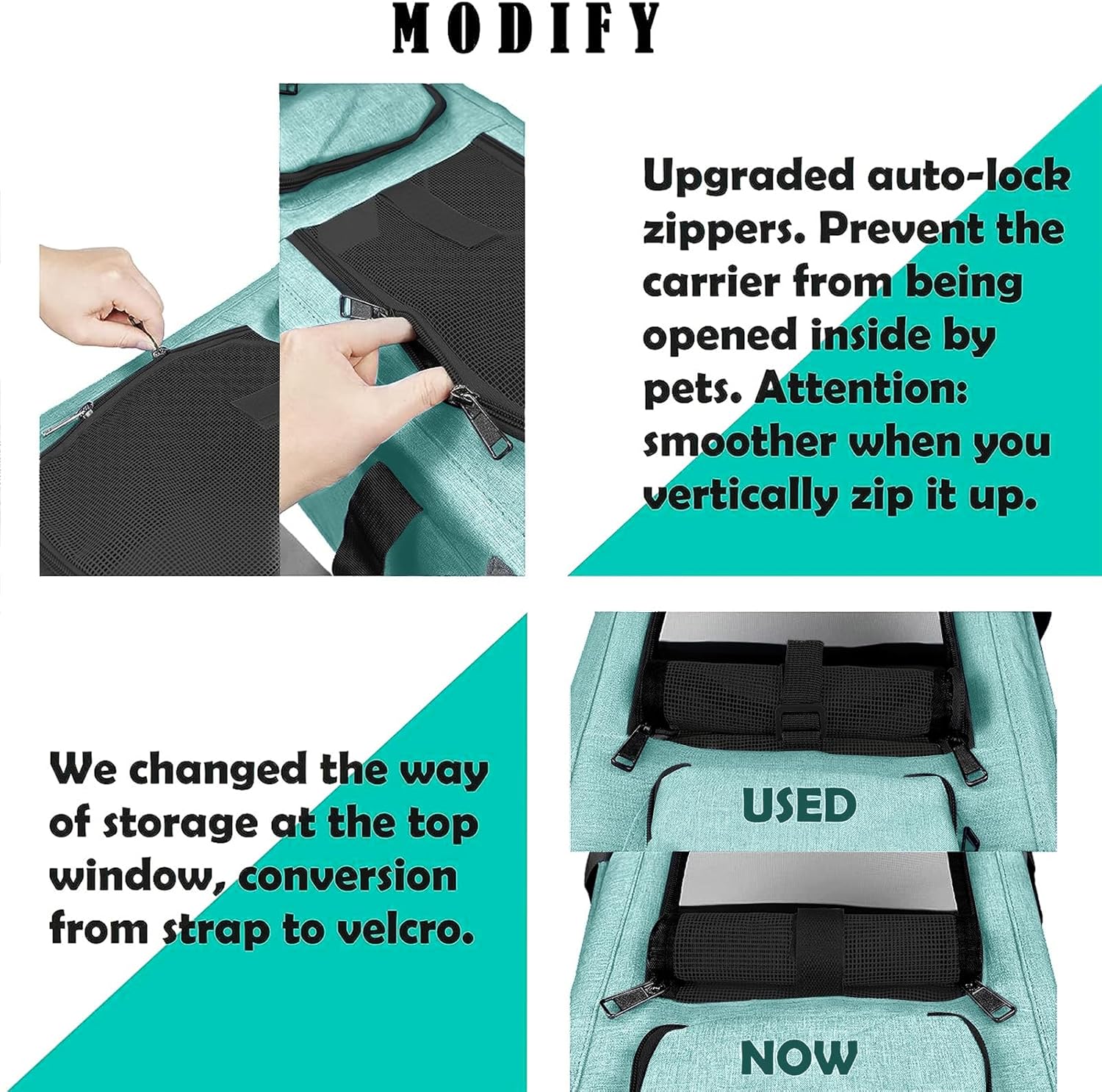 【Collapsible & Lightweight】The cat carrier can be folded into a pad to save your storage space and is easy to take out. Top and side entry.