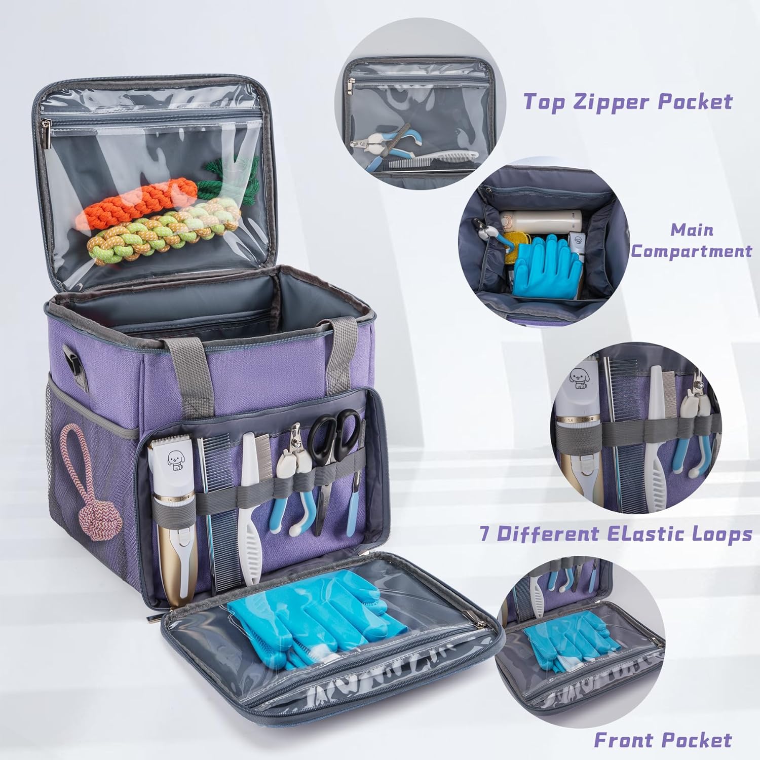 【Grooming Supplies Storage】: This premium purple pet grooming tote is designed to store and organize all your pet grooming tools, making it the perfect dog storage organizer for groomers and pet owners alike