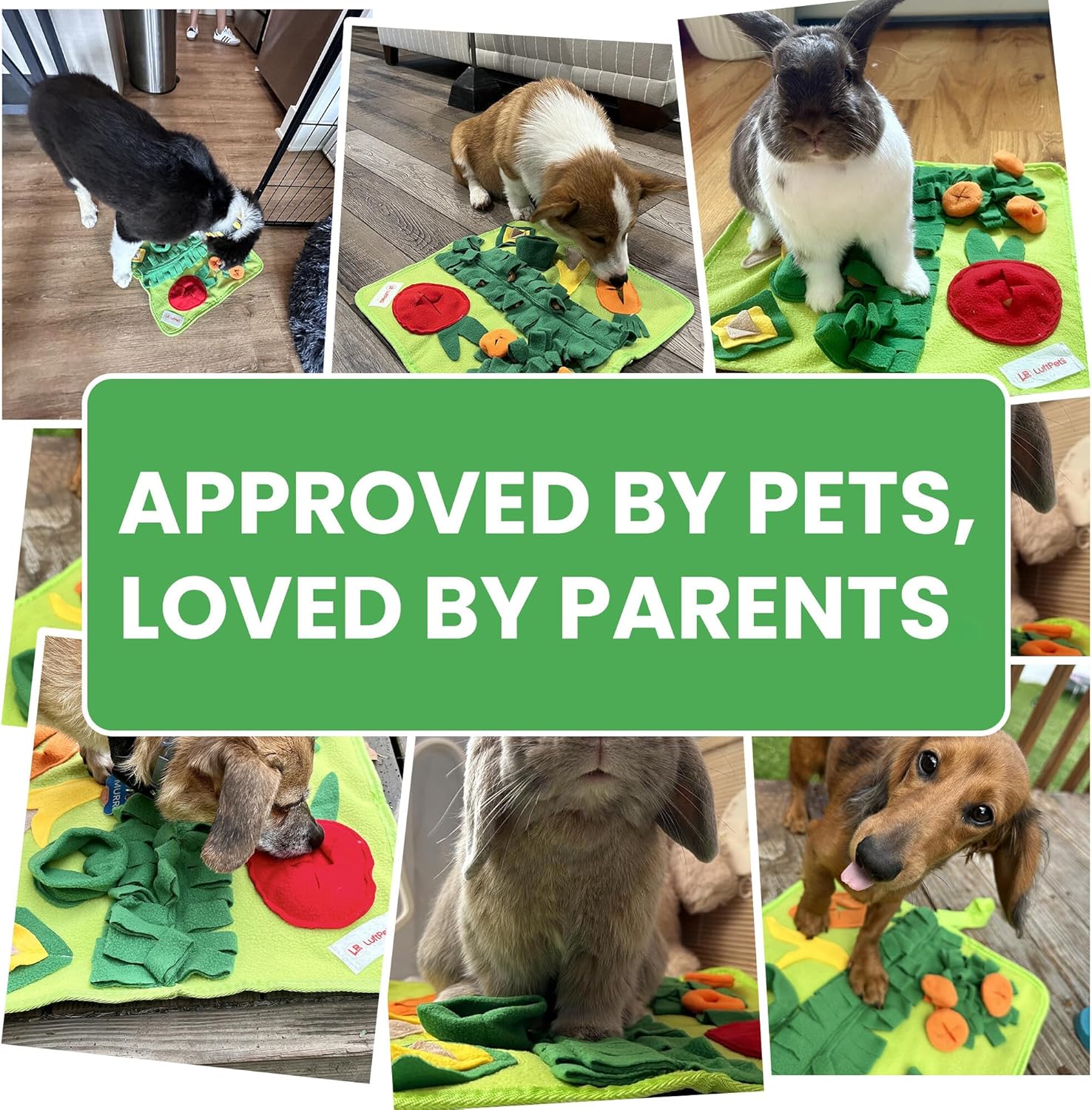 SAFE SLOW FEEDING SOLUTION: Your puppy will enjoy searching for treats on this colorful veggie patch & snuffle mat for dogs small. This foraging mat for dogs adds fun to playtime and, helps slow down feeding & keeps your pup safe. Ideal for last-minute gift shopping.