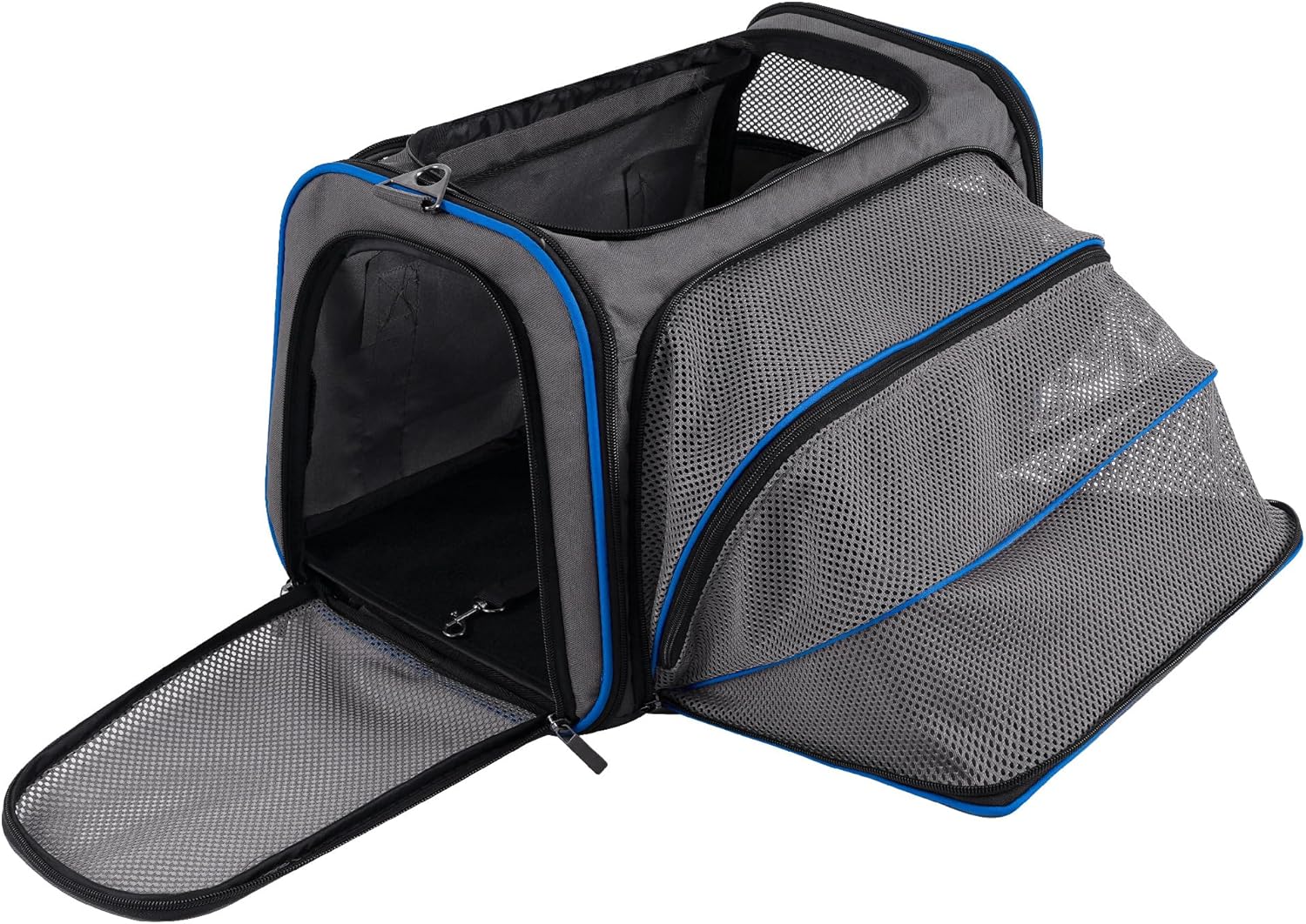 [ EXPANDABLE SOFT-SIDE CARRIER ] The size of carrier is 17x11x11 inches and expandable size is 20x17x11 inches by expanding the mesh windows,available for pets up to 15lbs .Please measure your pet before booking.