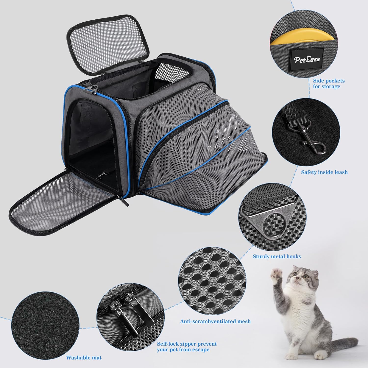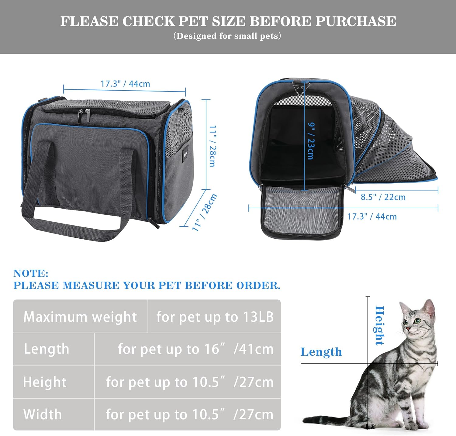 Soft Sided Cat Carrier for Small Medium Cats and Puppy up to 15lbs,Airline Approved Cat Carrier,Expandable Cat Travel Bag