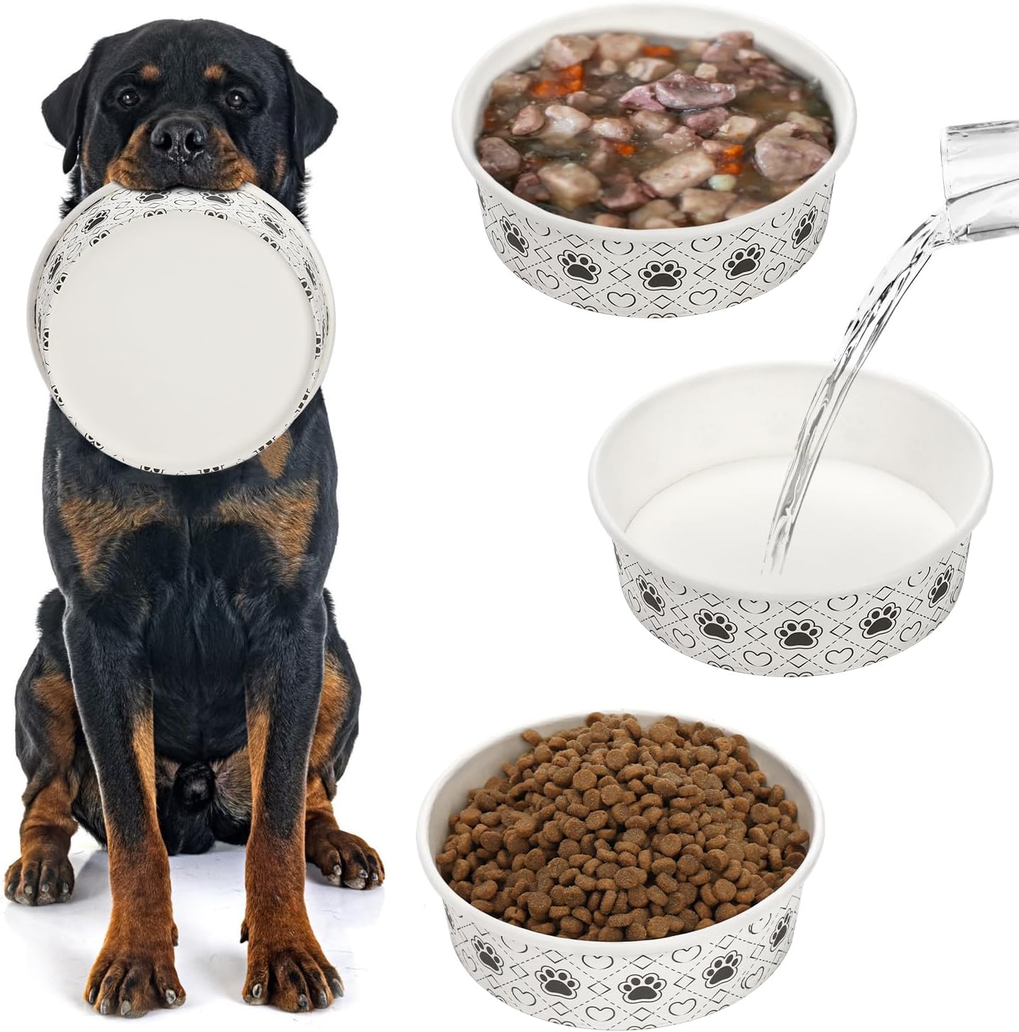 SOUJOY 40Pcs Disposable Pets Bowls, 16 oz Paper Dog Food Bowl, Cute Foot Print Design Travel Cat Feeding Bowl for Small Dog Puppy Dry and Wet Food or Water