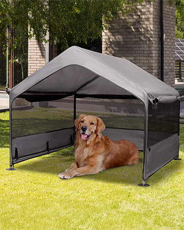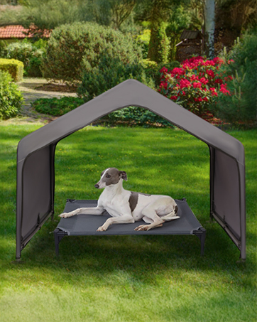 2-IN-1 DOG SHADE- The dog cot consists of a Elevated bed inside and a frame with a waterproof and UV-resistant cover. This powder-coated steel frame creates a sturdy elevated dog bed. Simply remove the top frame and waterproof cover to transform it into a raised bed. And this XL elevated dog house can hold up to 178 lbs, ensuring durability and comfort for larger dogs