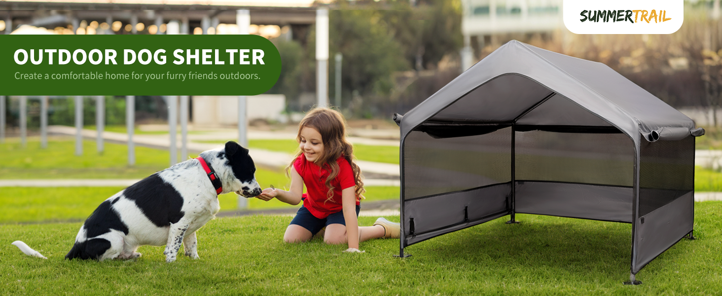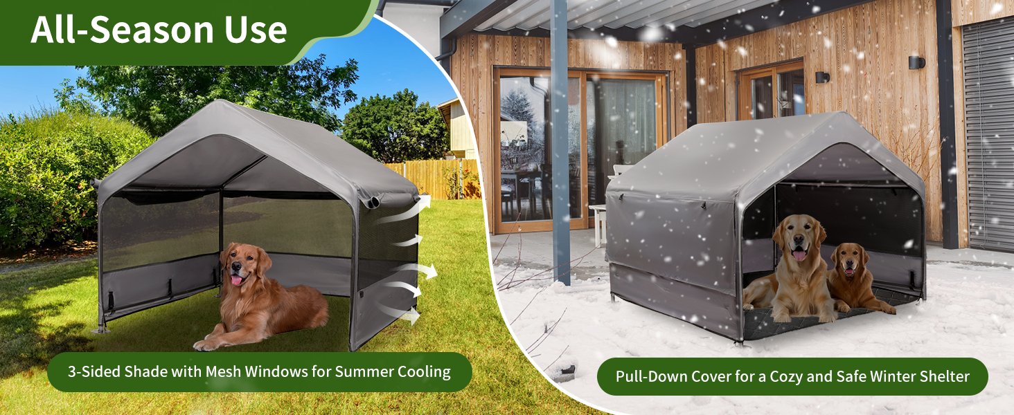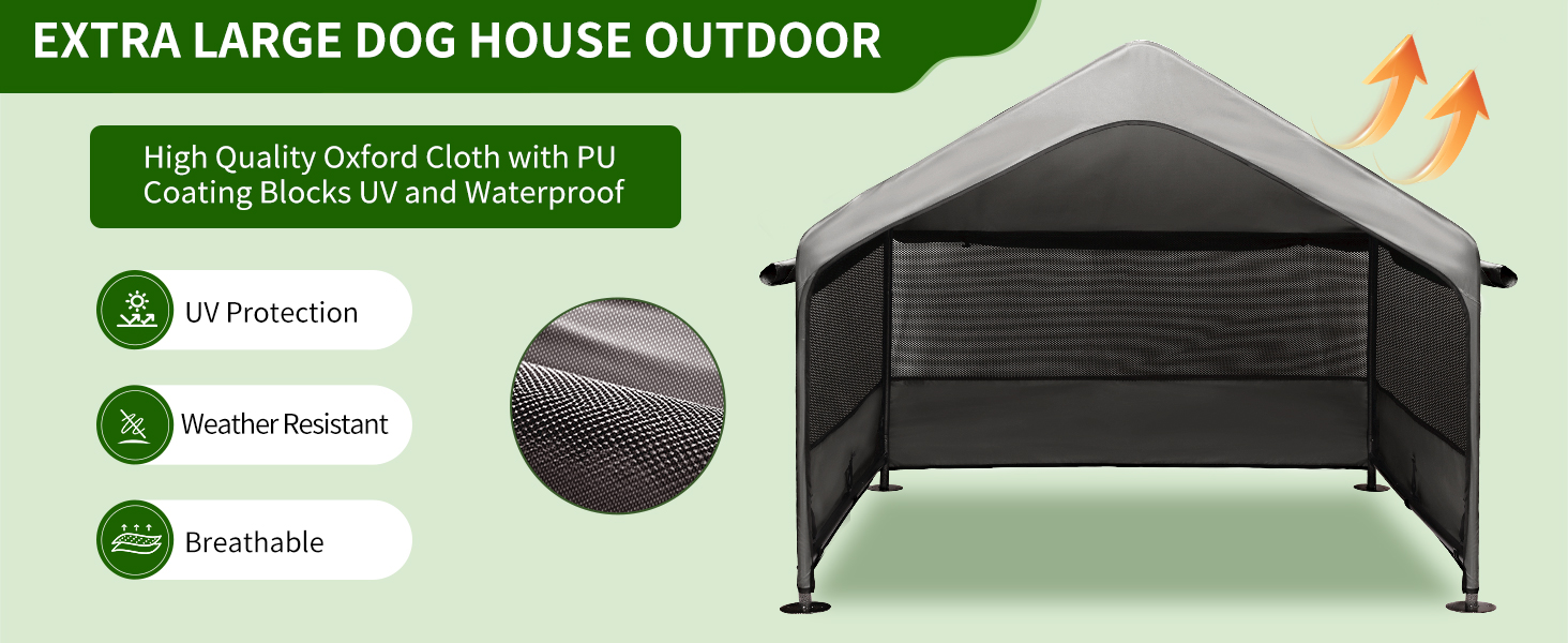Summertrail Extra Large Dog House Outside, Dog Tent Outdoor, Big Dog Shade Shelter Doghouse Canopy with Three-Sided Breathable Mesh Windows, Gray Sun Rain Cover for Pet Cat Livestock 4’x 4’x 3.3′