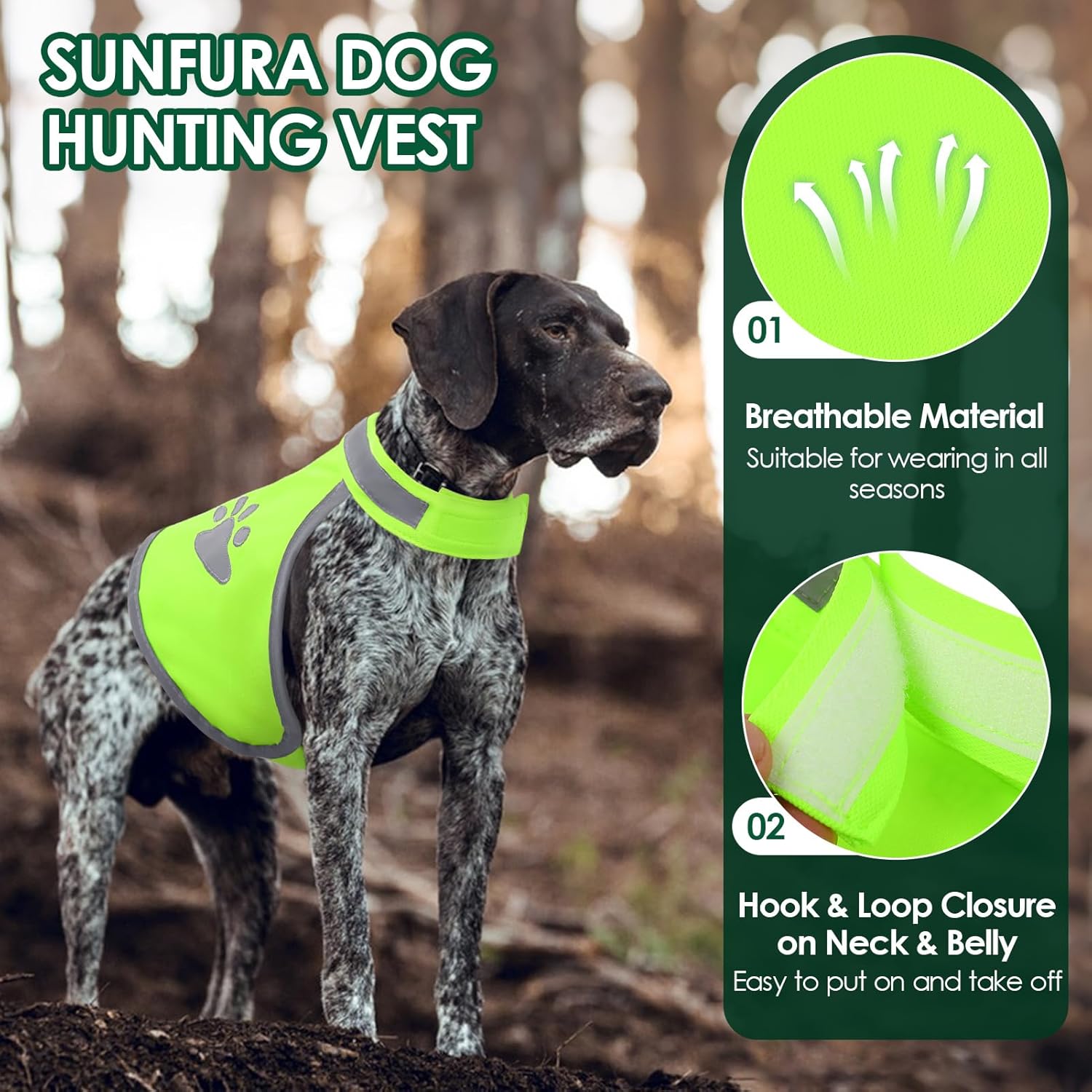 SUNFURA Dog Reflective Safety Vest, High Visibility Adjustable Dog Hunting Harness Vest for Outdoor Activity & Night Walking, Breathable Pet Jacket for Small Medium Large Dogs (Green, S)
