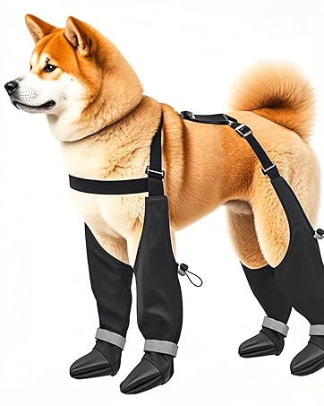【Adjustable fit】With an adjustable elastic strap connecting all 4 leggings, these suspender boots automatically fit your dog’s legs comfortably, making walking easier and more enjoyable for your pet.Key reference for the Forelimb Circumference Length to choose the appropriate size. If the dog size is between two sizes, please choose the smaller size (because the strap is elastic)