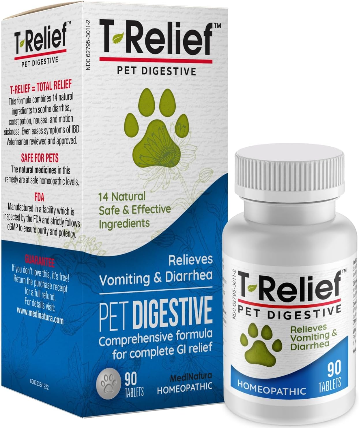 T-Relief Pet Digestive Complete GI Relief for Dog & Cat Soothing Aloe + 13 Natural Homeopathic Actives Help Calm Nausea & Diarrhea from Mild Illness Food Stress or Motion Sickness – 90 Tablets