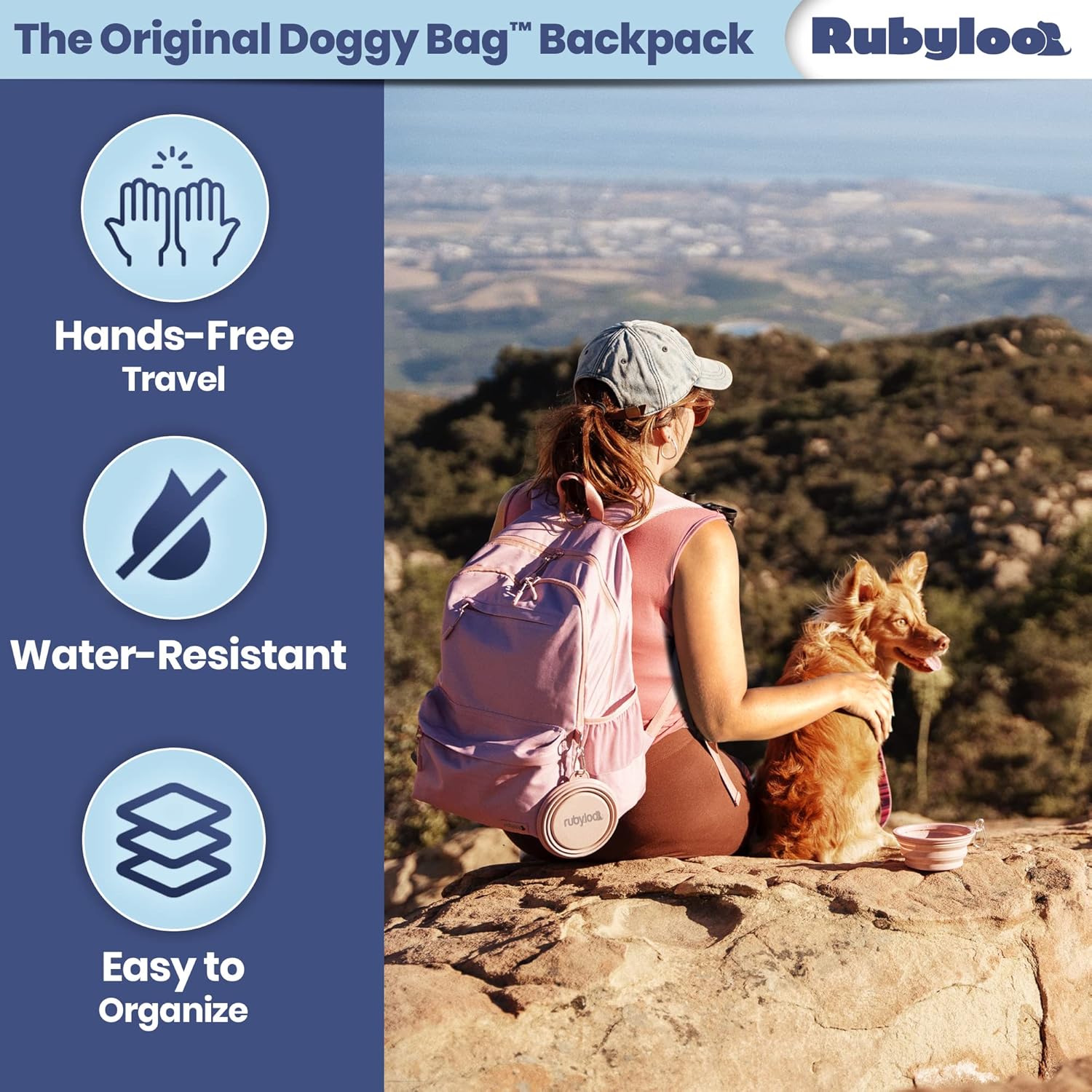 The Original Doggy Bag Backpack (Dusty Pink) – Dog Travel Backpack with 2 Collapsible Bowls, Treat Bag, Lined Food Container, Placemat & Dog First Aid Kit with Pet First Aid Book & Supplies