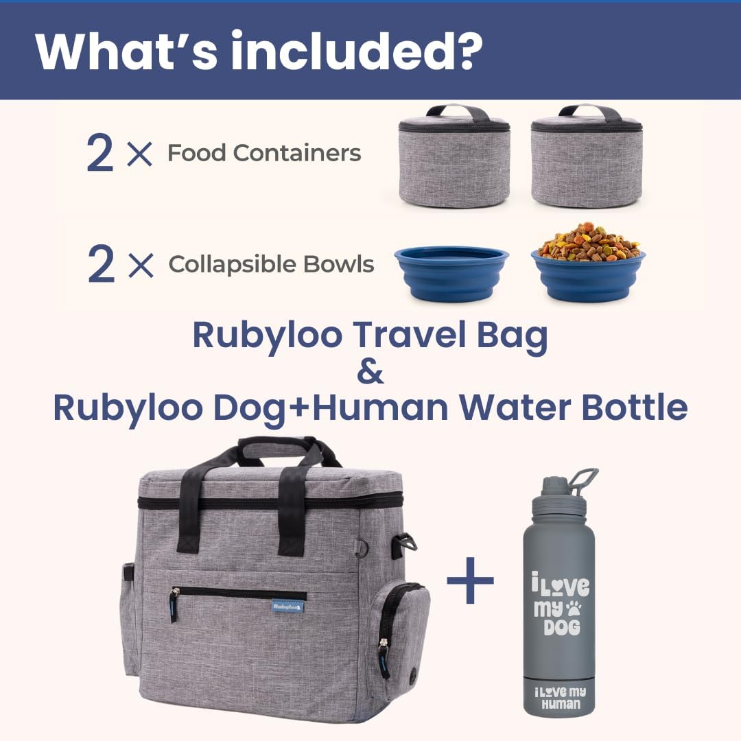 The Original Doggy Bag (Grey) & 32oz Insulated Water Bottle with Attached 8oz Bowl (I Love My Dog) – Dog Travel Bag & Hydration Set