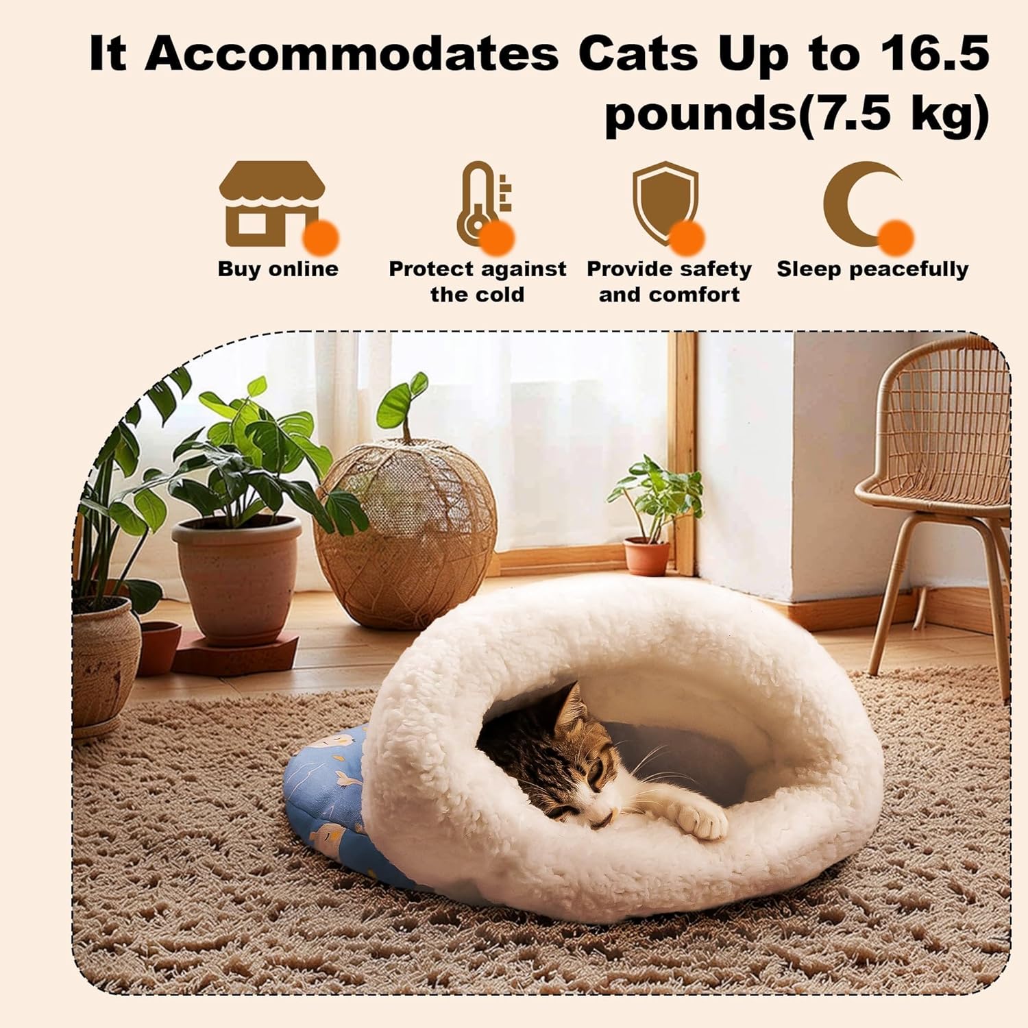 【Soft Cotton Build for All Seasons】Made of breathable cotton, this cozy cat sleeping bag ensures gentle warmth without overheating—safe, soft, and ideal for year-round snuggling and lounging