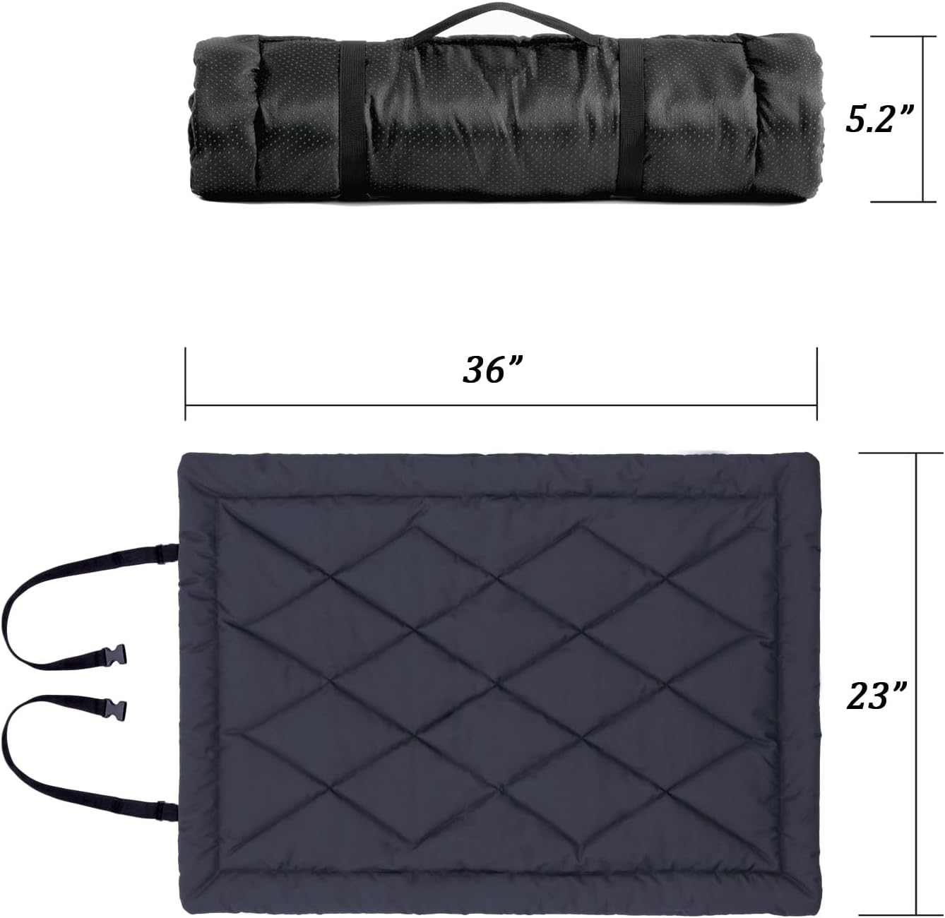 [Portable and Comfortable] This portable dog bed is easy to roll up for on-the-goconvenience, generously filled for softness and breathability. Available in twosizes, M and L, with a moderate thickness of about 2 inches.Take it to thebeach, your backyard patios, put it in the crates or use it as an indoor dogbed – this indestructible mat is your go-to for all your pet’s camping and travel needs.