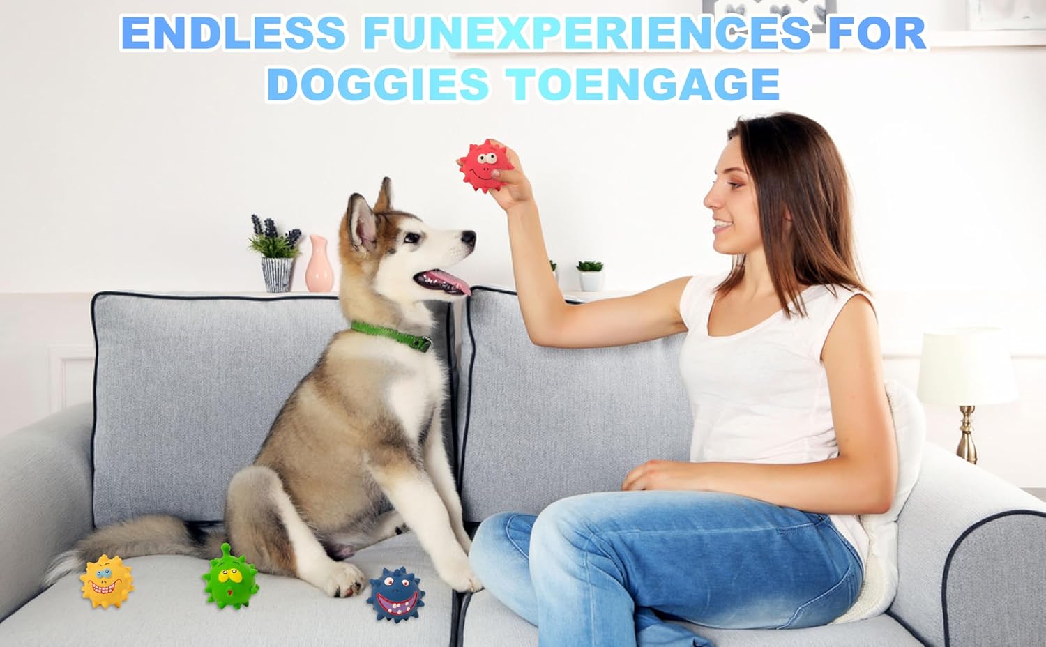 TTCOLATOPIA 4Pcs Squeaky Dog Toys Set – Natural Latex Rubber Balls for Large, Medium, Small Dogs – Aggressive Chewers Friendly – Cute Faces for Fun