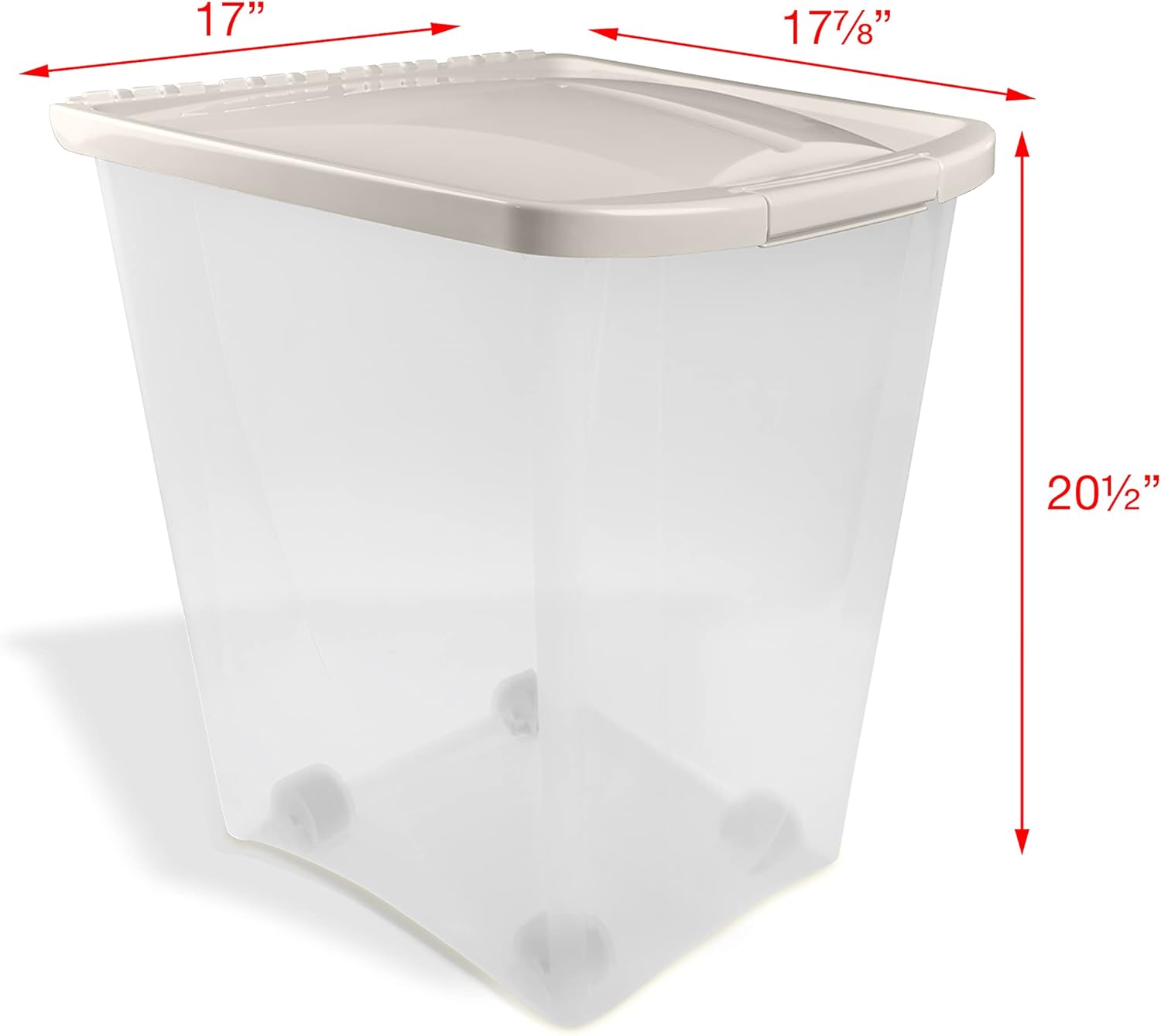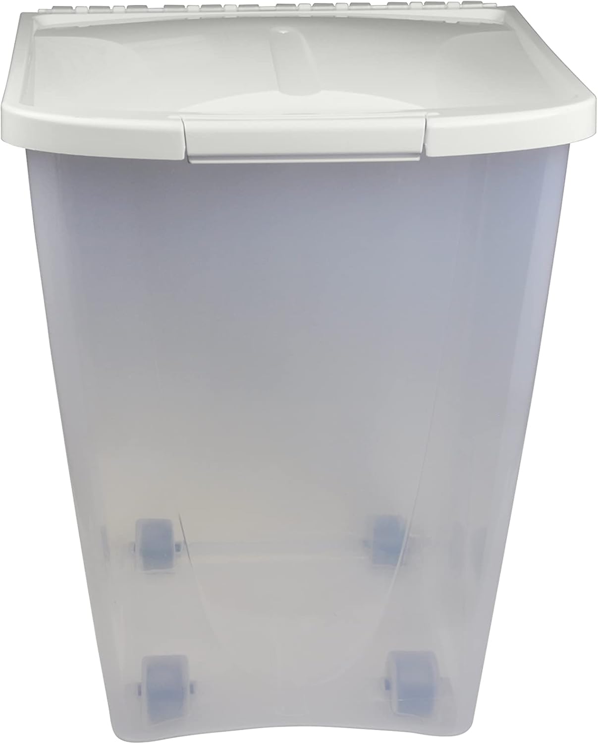 Ideal for Pet Owners Who Want to Store 50-Pounds of Pet Food. Fresh-Tite Seal Ensures Your Pet’s Food Will Stay Fresh Longer Reducing Spoilage Due to Pests and Moisture. Made From United States Food and Drug Administration Approved Plastic for Food Contact. Designed with Four In-line Wheels for Easy Mobility.