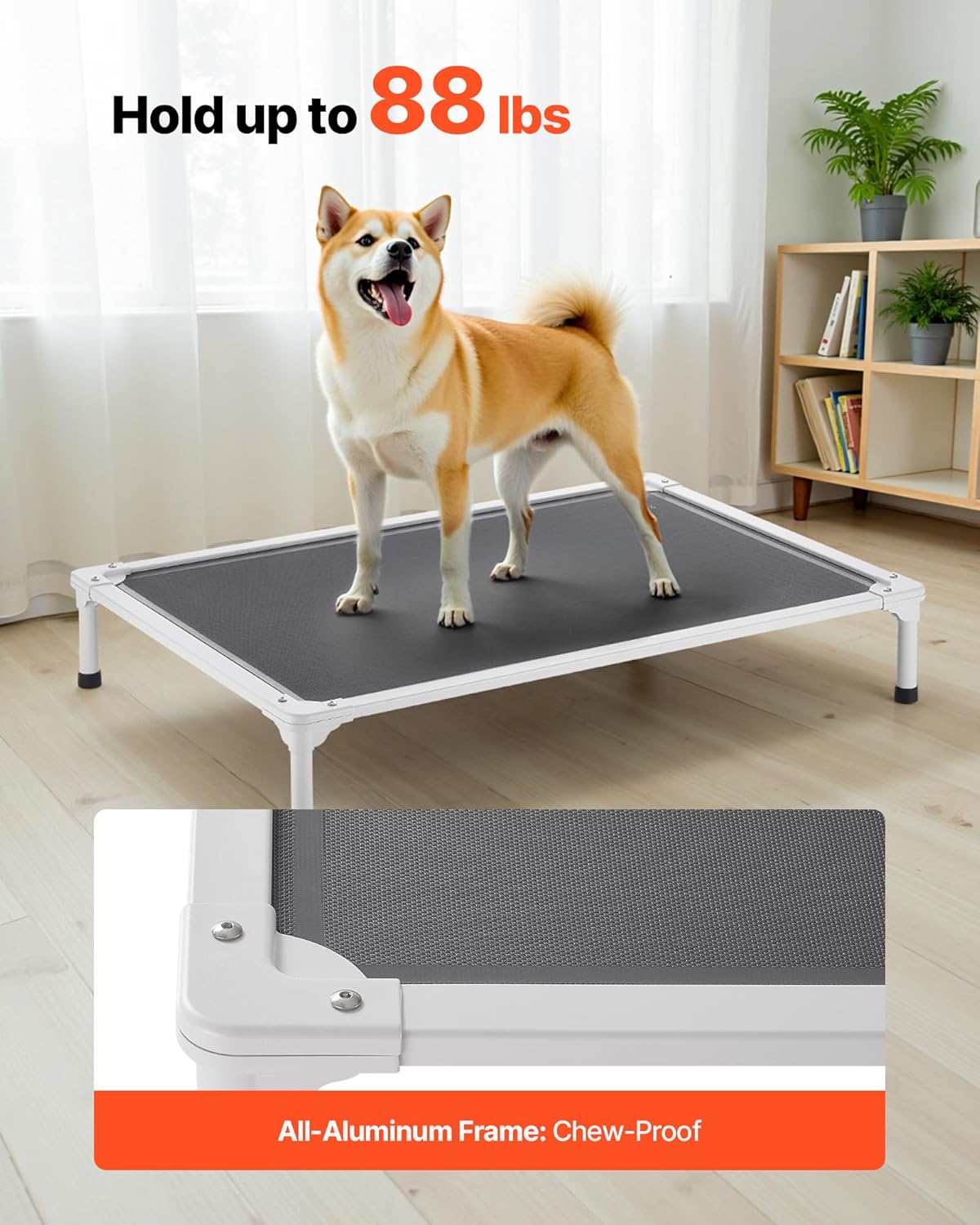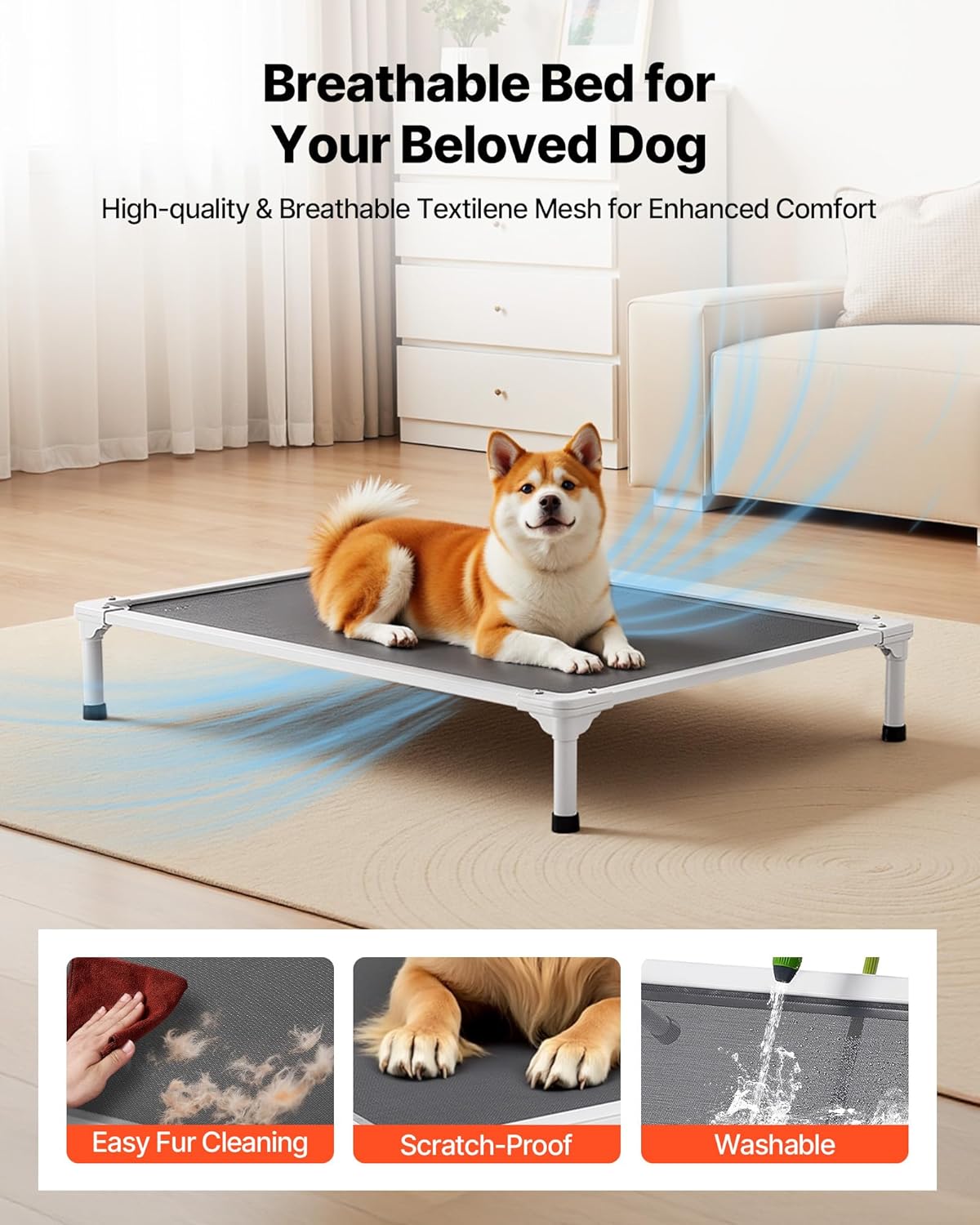 VEVOR Chew Proof Elevated Dog Bed, Portable Raised Dog Cot with Aluminum Tube Metal Frame and Breathable Textilene Mesh, Indoor & Outdoor Pet Cooling Raised Hammock Bed, L, Gray