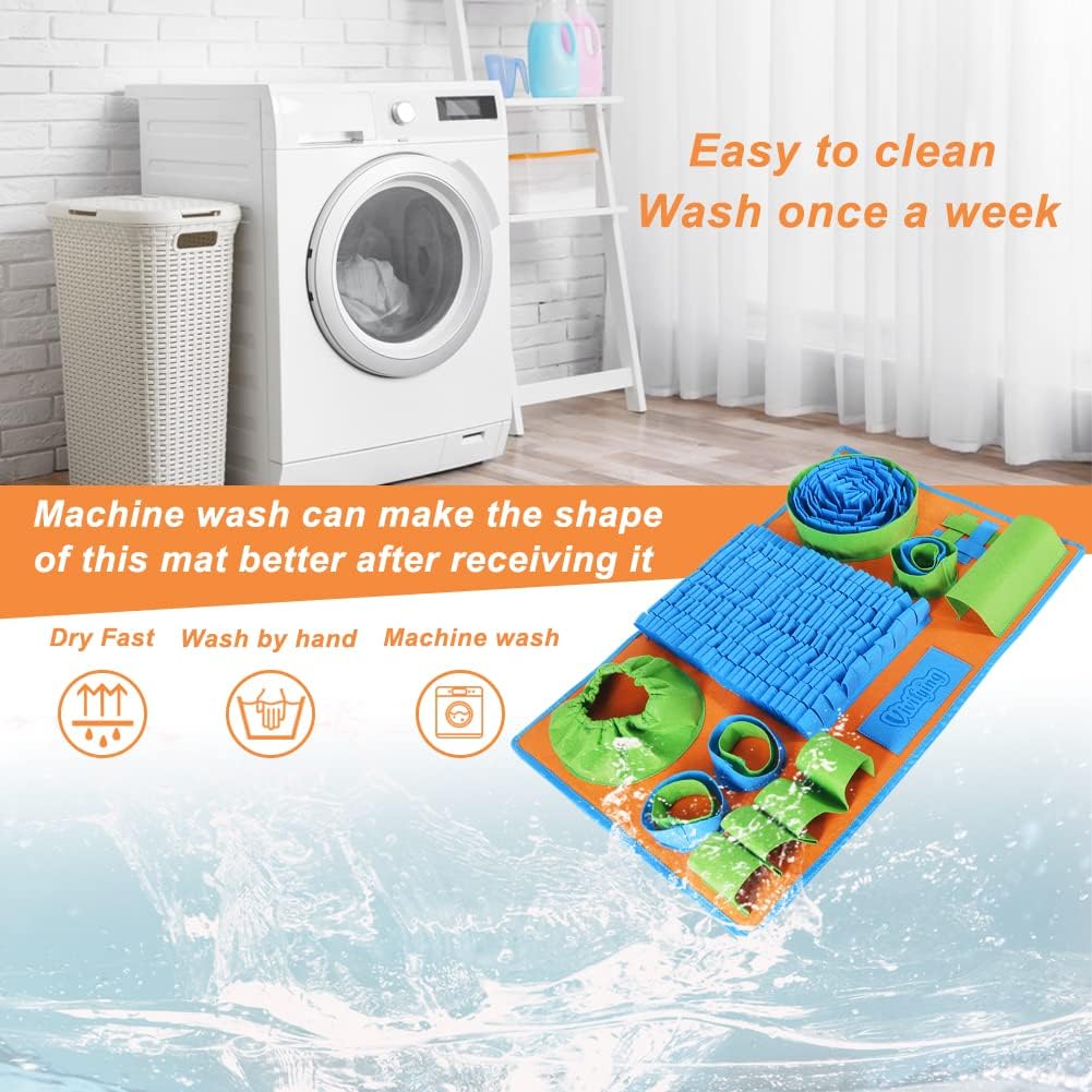 SAFETY MATERIALS – The main material of the foraging mat is felt cloth, which is safety but not chewproof. When you receive this felt snuffle mat, machine wash it once to make the shape as good as the picture