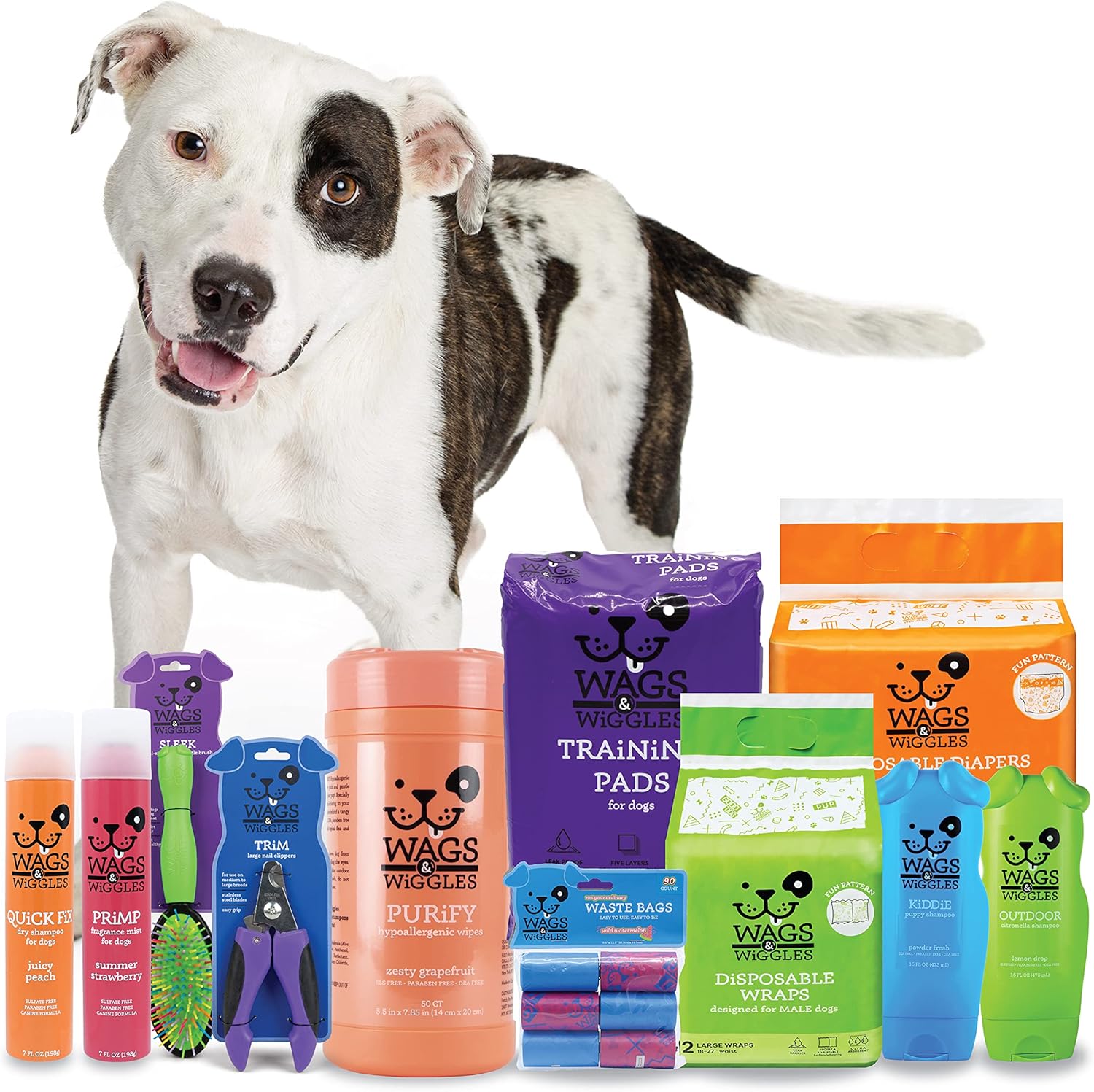Dirty dog? The mild cleansers in Wags & Wiggles polish multipurpose wipes for dogs deodorize, freshen, and clean without irritating pups’ sensitive skin. These dog wipes condition, soothe, and bring your dog a shiny coat by using high quality aloe vera. The convenient size of these dog cleaning wipes makes them perfect for tossing into your doggie adventure bag when it’s time to hit the dog park or the trail. When the messy fun is done, just rub your buddy down with a few of these refreshing dog wipes and he’ll be ready for more civilized occasions. Use multipurpose dog cleaning wipes to clean dog paws or clean dog coats after play time. Get your buddy nice and clean with Wags & Wiggles dog wipes. Formulated to be gentle on sensitive skin, these cleansing cloths are infused with aloe, oatmeal, and cucumber to keep your pup’s coat nourished, moisturized, and tangle free. One whiff of the delicious Fresh Strawberries scent and your dog will be wagging his way to another bath! Bring the entire pack when you travel with the Wags & Wiggles Pet Dog Deodorizing Wipes. These gentle grooming wipes are free of parabens, SLS, and other harmful ingredients, using oatmeal, aloe vera, and cucumber to clean your dog’s coat without irritation. They also help to condition your dog’s fur and skin with a fresh scent. These wipes are ideal if your pup tends to get into stinky or dirty situations that require a little extra TLC. DIRECTIONS: Gently wipe your pet with wipes for dogs from ears to back of tail avoiding eyes.