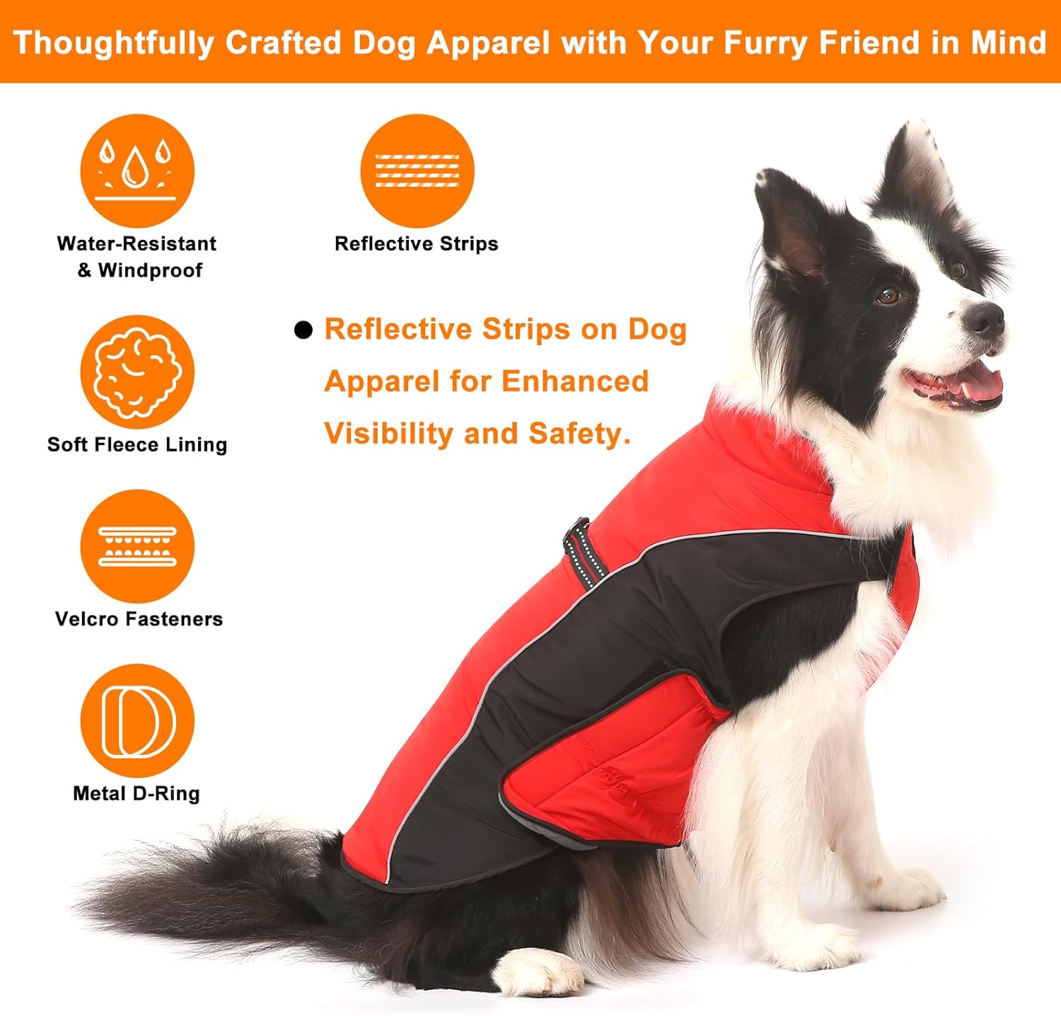 ✅ 【 Enhanced Visibility with Safety Reflective Strips 】The dog winter coat features safety reflective strips on the back, providing additional visibility during nighttime walks and outdoor adventures. The reflective design of the dog snow jacket ensures your dog stands out during nighttime excursions, allowing you to quickly locate your beloved companion in the darkest of nights.
