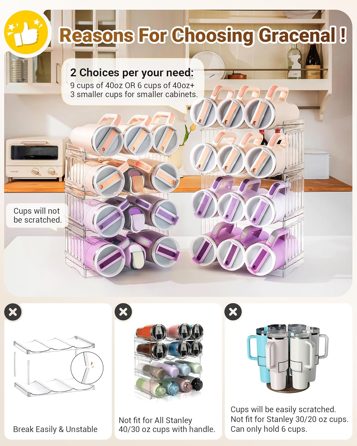 VERSATILE ORGANIZATION AND STORAGE: Say goodbye to cluttered cabinets and fridges. Store and organize your water bottles, travel mugs, coffee cups, insulated tumblers, sports flasks, shaker bottles, baby bottles, straw cups, drinks, and more with the kitchen storage. You can’t miss the useful kitchen utensils and kitchen gadgets and accessories 2024.