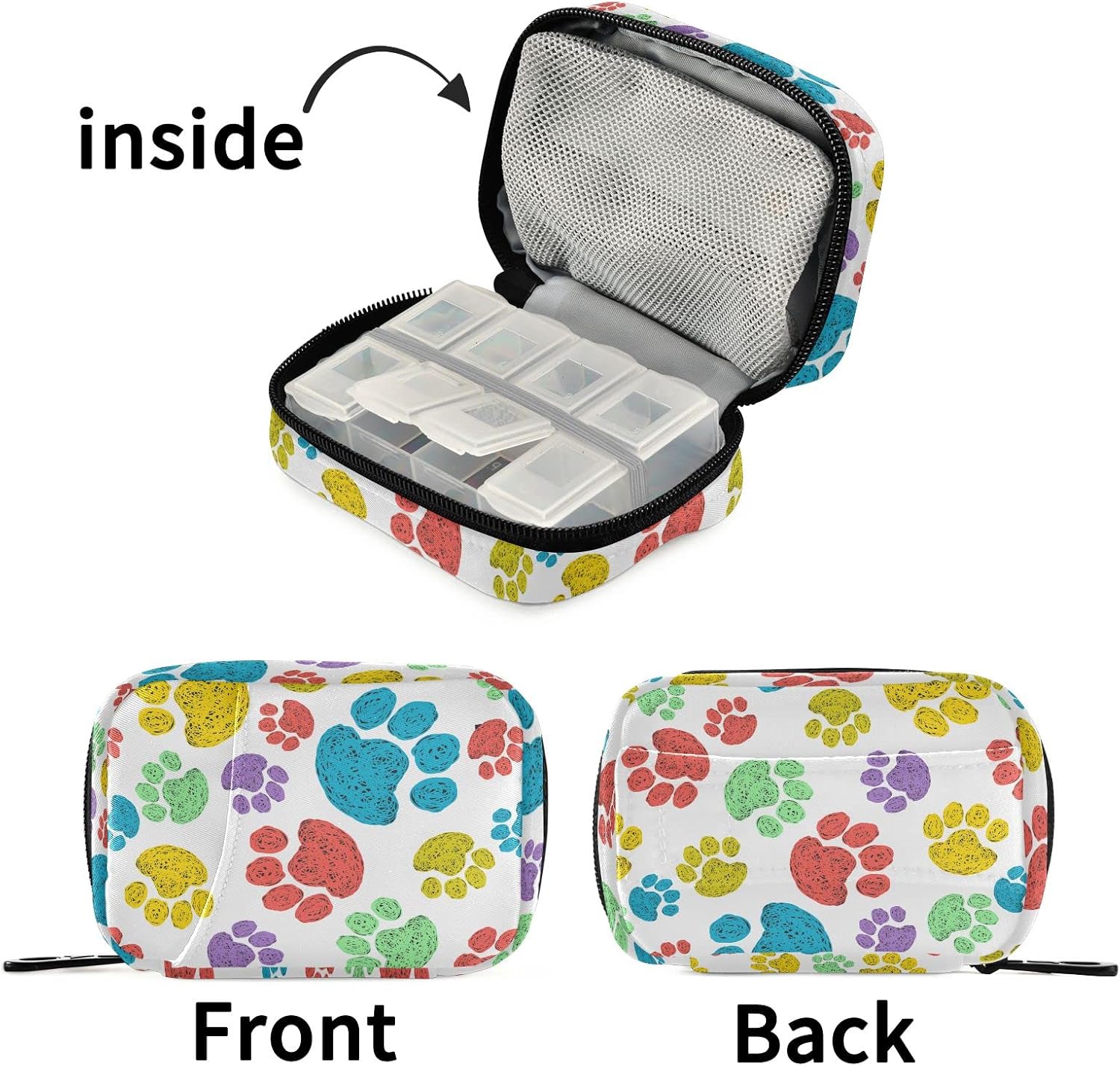Watercolor Dog Paw Travel Pill Case Portable Weekly Pill Box Bag Container 7 Days Pill Organizer Vitamin Supplement Holder with Zipper for Family Business