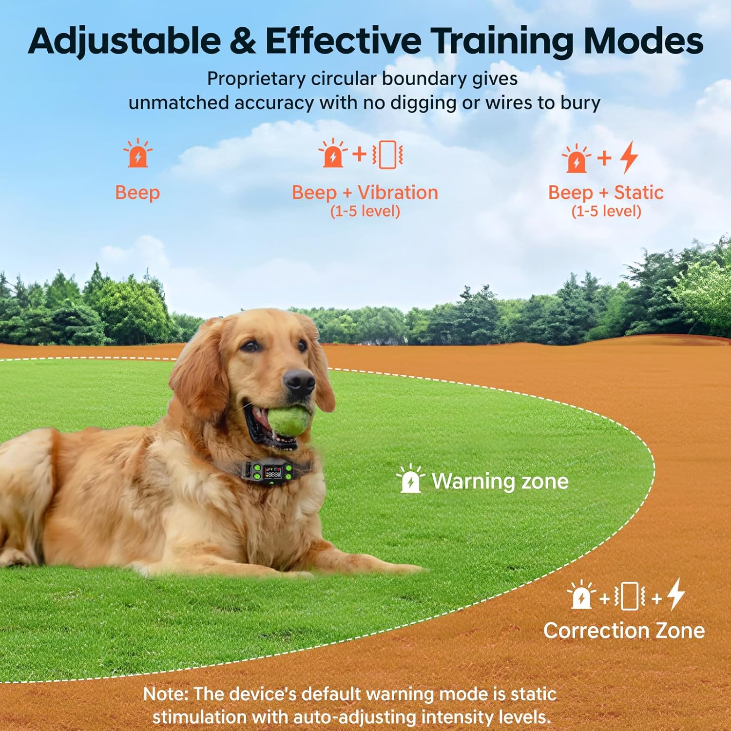 Wireless Dog Fence, GPS Dog Collar Fence System, Invisible Electric Fence for Dogs with 3 Warning Modes, Radius 25-999 Yards, IPX7 Waterproof/Rechargeable Electric Dog Fence for Outdoor Use