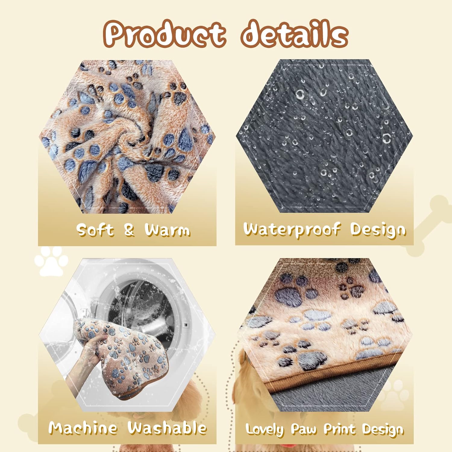 Warm and comfortable: Soft fleece, neat and tight edge stitching design ensures that pet blanket is comfortable and durable; The reversible blanket equipped with a layer of mylar material that reflects body heat, effectively prevents humidity and cold, keeping your pets soft and warm on your sofa or bed
