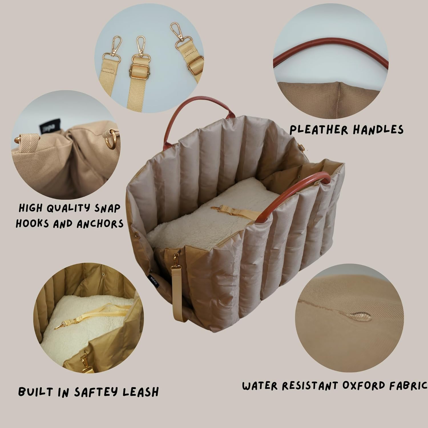 ZEPA Premium Material: Made out of tough Oxford fabric that provides a water resistant bed, Leather straps for comfort and ease of carrying your animal with double stitching to prevent rips and tears. Metal clips and strap buckles for luxury and durable use.