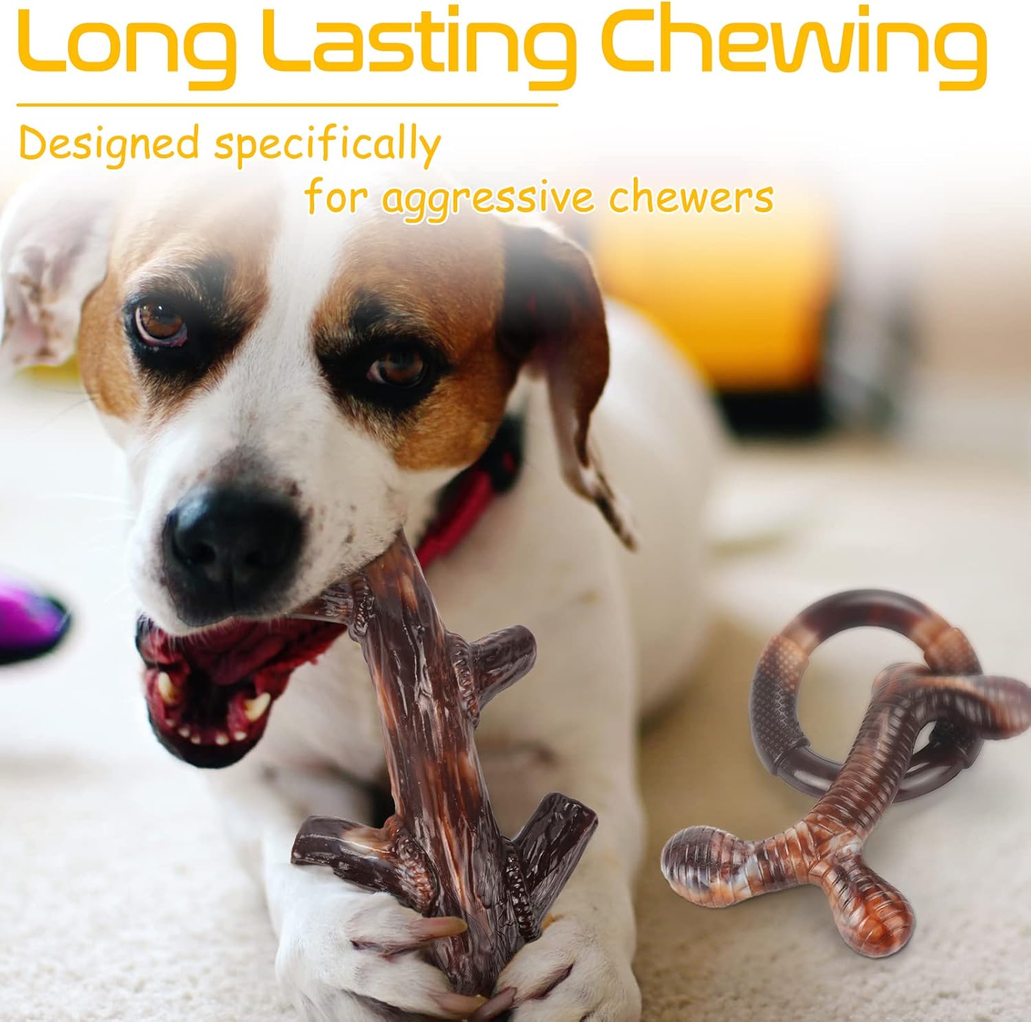 Indestructible dog toys for aggressive chewers – These three pack dog toys for large dogs are all made of food-grade nylon, which are tougher than real bones and withstands the strong chewing of a dog. No longer have to worry about super chewer dog toys being easily broken and replaced frequently. (The marks that appear after chewing are not damaged)